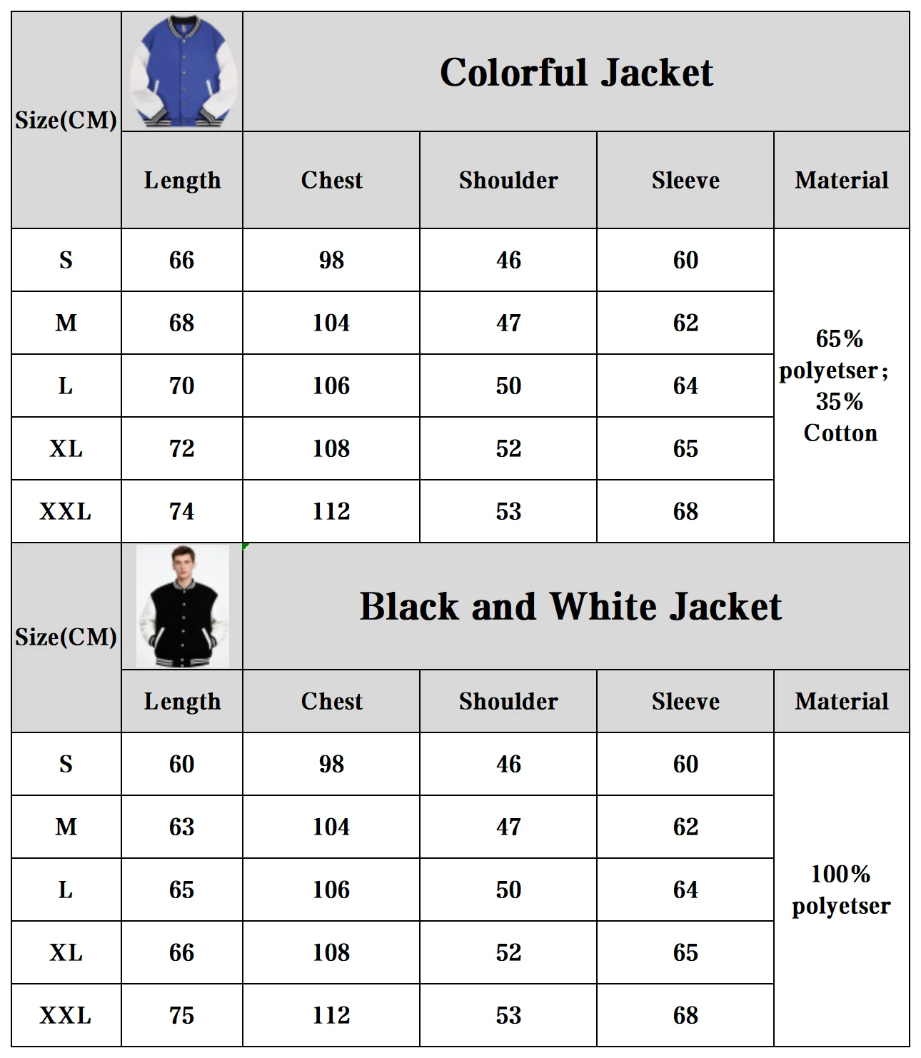 - Fabric: Colorful Jacket:65%Polyester,35%Cotton; Black & Whirt Jacket:100%Polyester