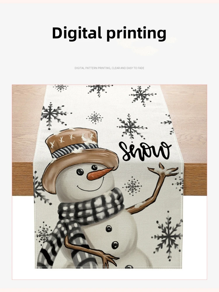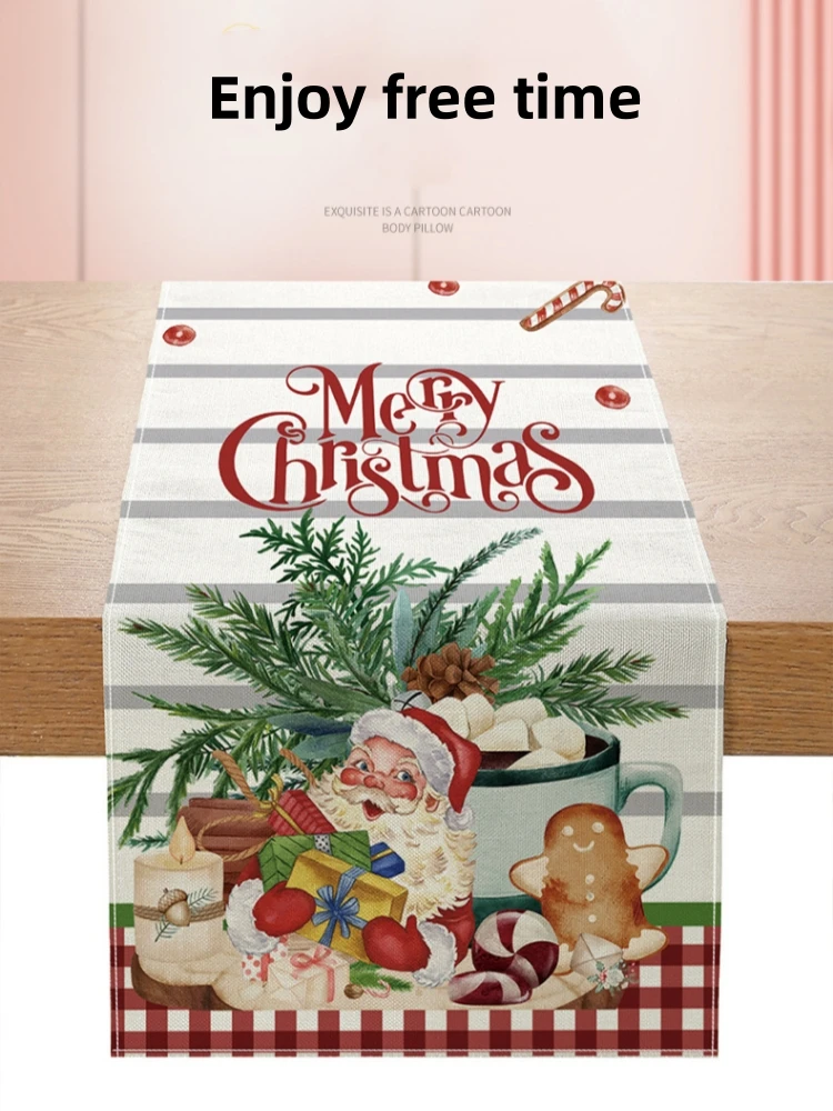 Christmas Table Runner New Xmas Decor Creative Print Linen Dinner Table Mat Tablecloth Merry Christmas Decor Home Xmas Ornaments