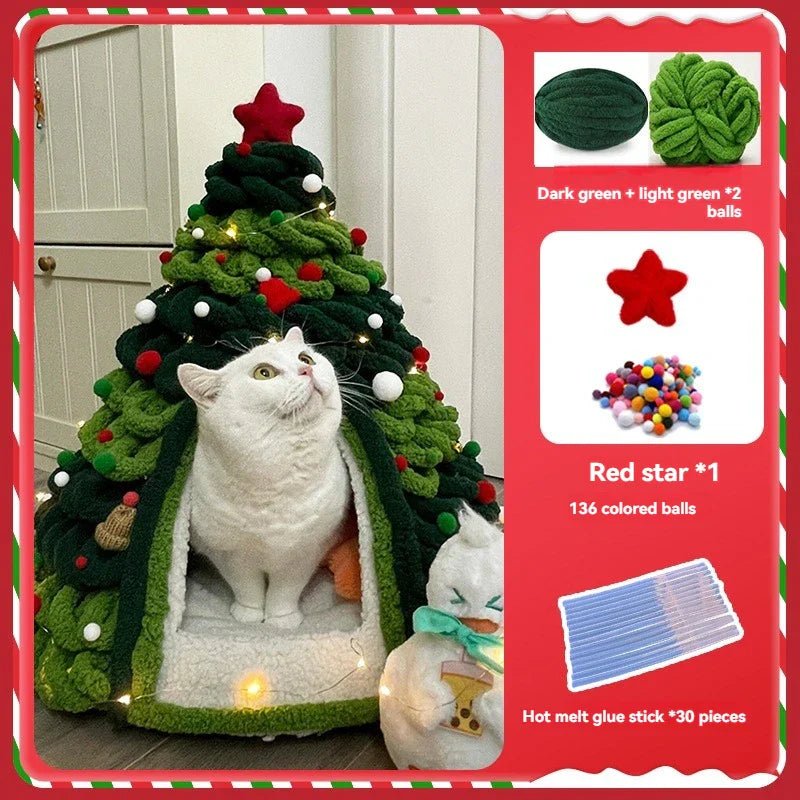 Christmas Tree Cat Bed DIY Yarn Tools Package felt cat tent Homemade kitten Puppy Nest Four Seasons Universal 6kg Pet Suppplies