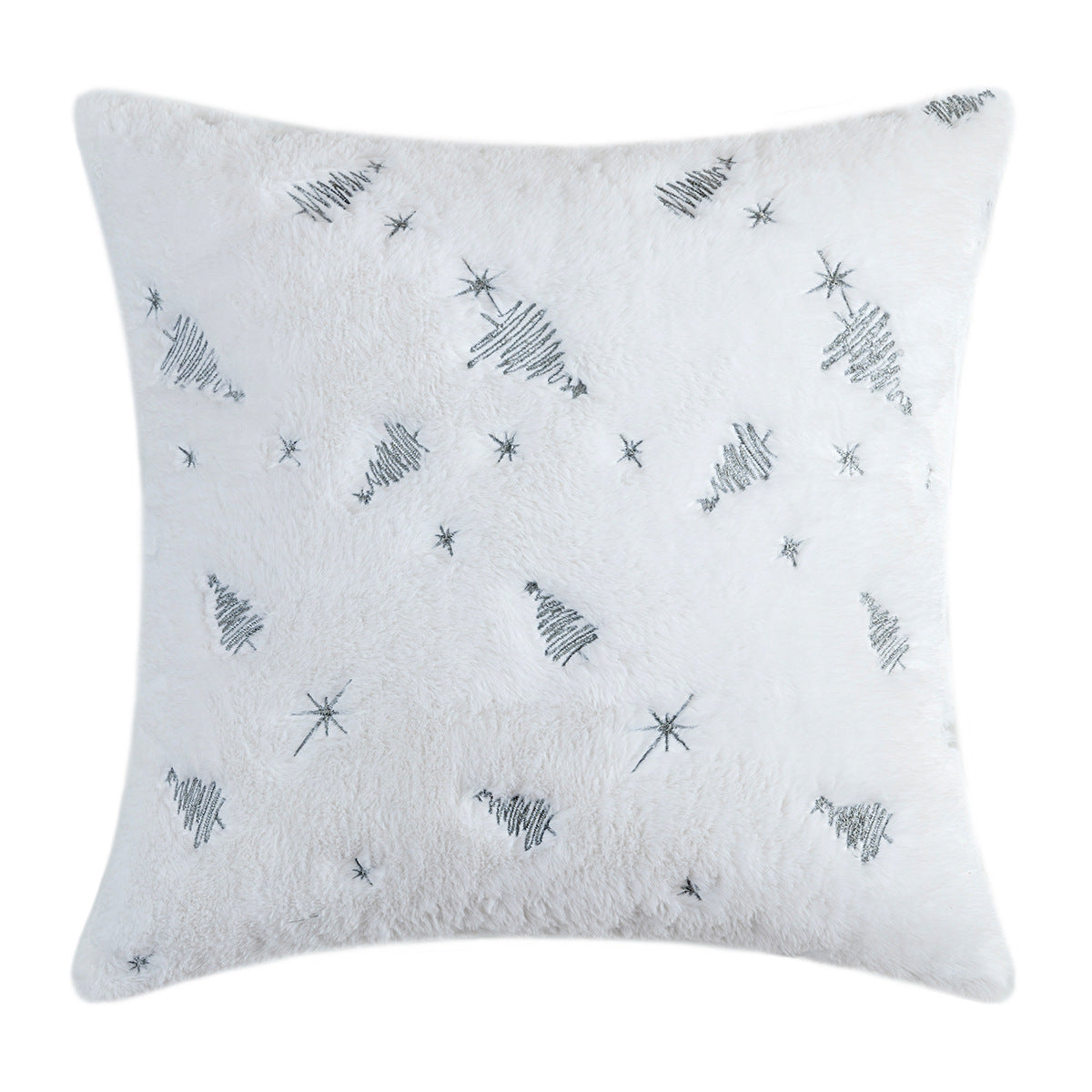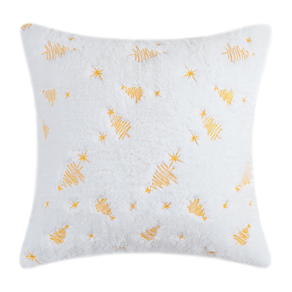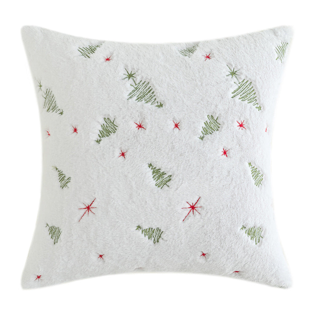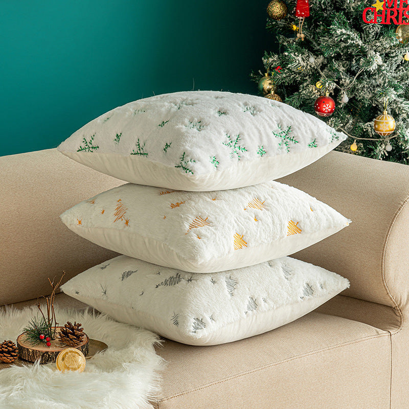 Christmas Tree Embroidery Pillow Cover Plush Snowflake