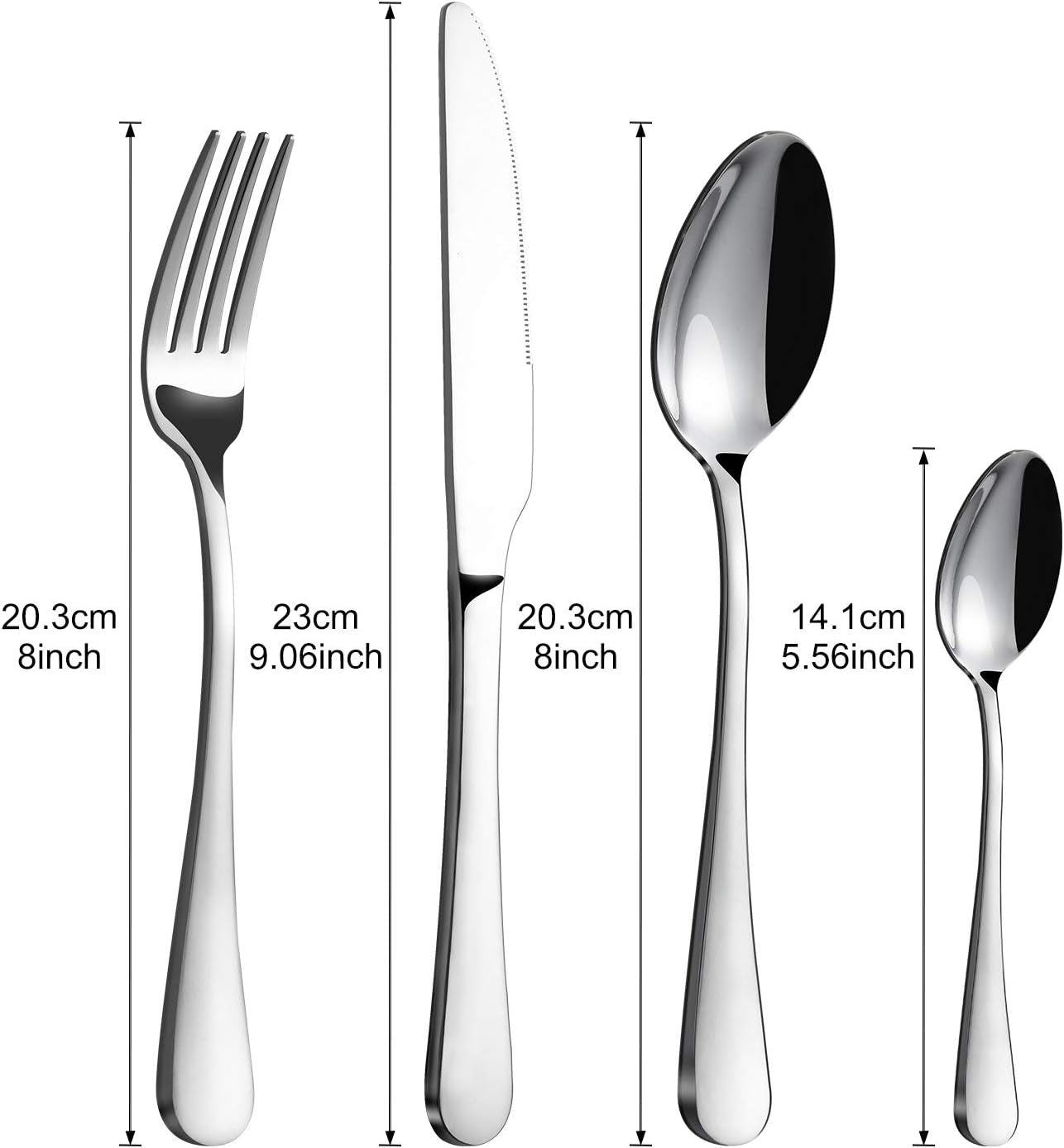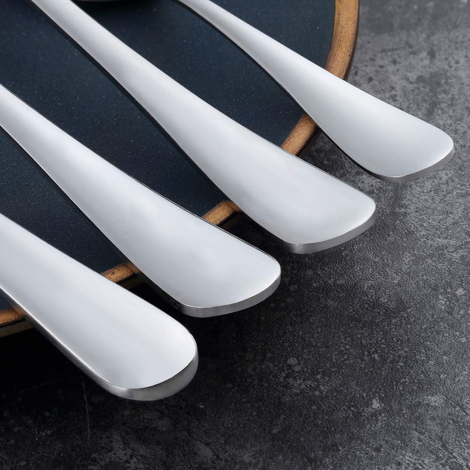 • 【Exquisite Craft and Good Grip】This 18/0 stainless steel tableware has a sturdy construction, no need to worry about bending, not too heavy and flimsy. The flatware set with no rough spots that ensures the safety of your lips, appropriate thickness and weight is suitable for both adults and children. Delicately design can provide you with a good grip.