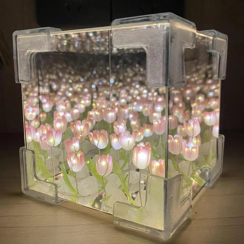 【2 in 1 Mirror Tulip Lamp】Our multifunctional tulip night light is a high-definition mirror when turned off. It opens to a sea of tulips., the hidden flowers under the light are beautiful and charming, It creates a pretty and charming atmosphere.