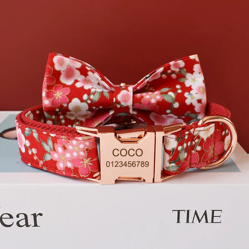 Dog Leash and Collar Set Exceptionally Elegant and Adjustable in Different Lengths Perfect for Medium to Large Dog engraved name Flowers 02