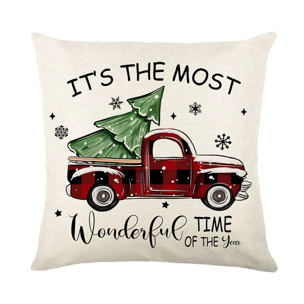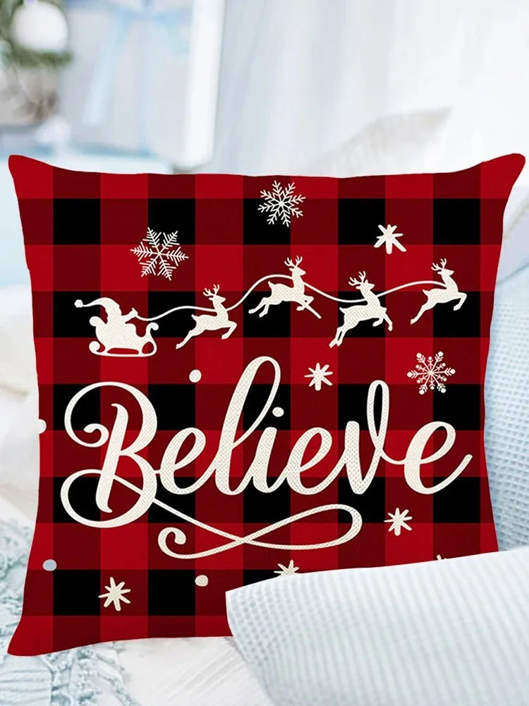 Festive Christmas Tree Pillow Cover 45x45cm - Red Holiday Decor Cushion Case for Sofa Living Room Bedroom, Xmas Pillow Cover