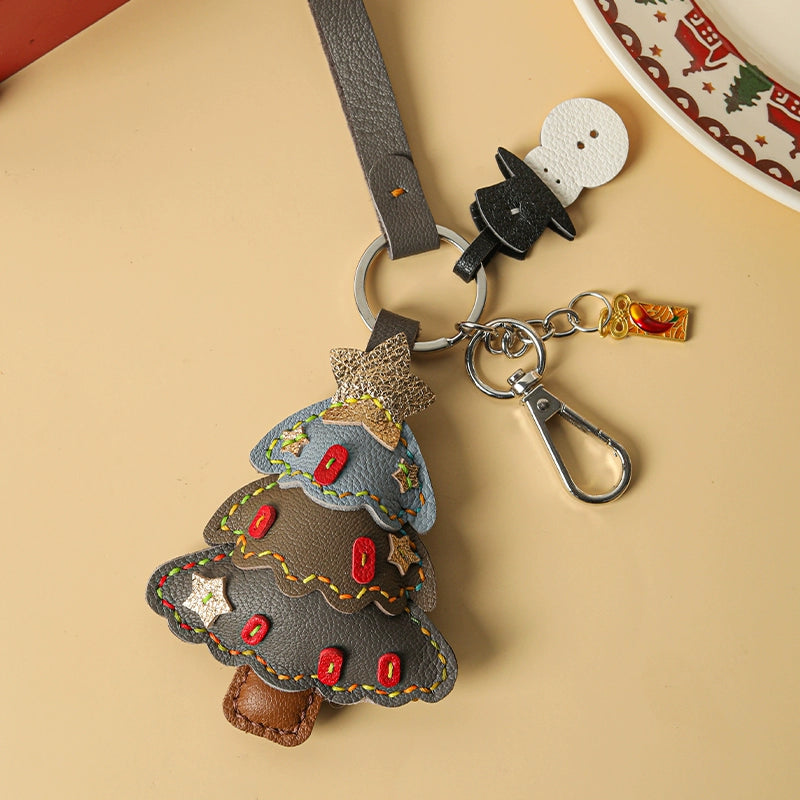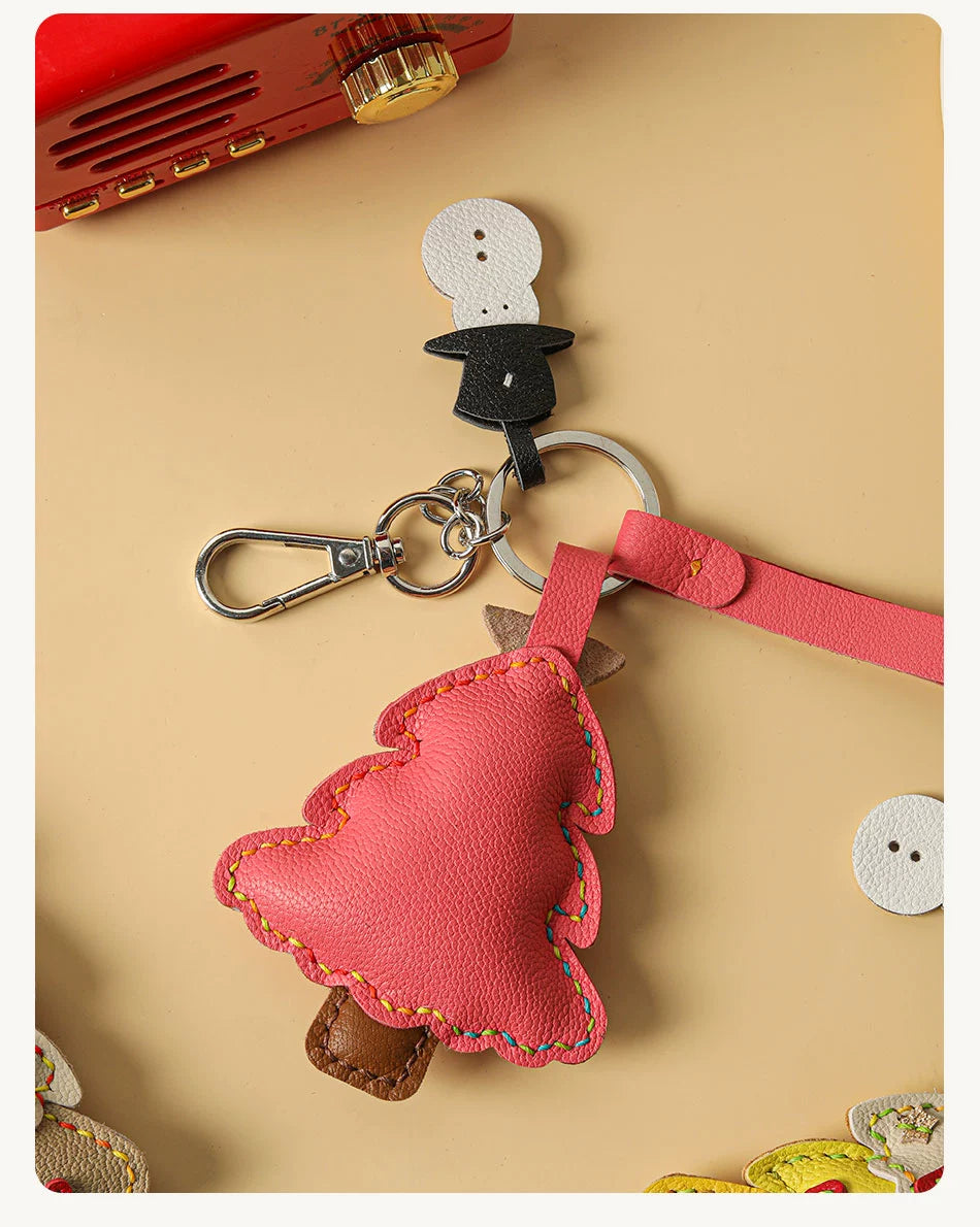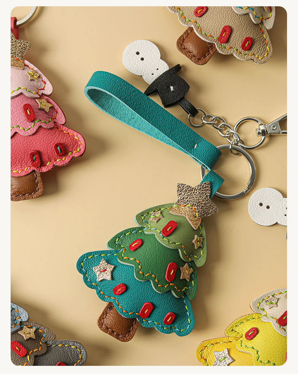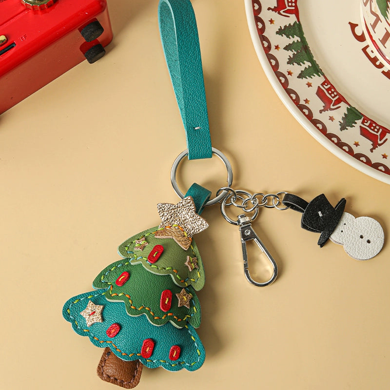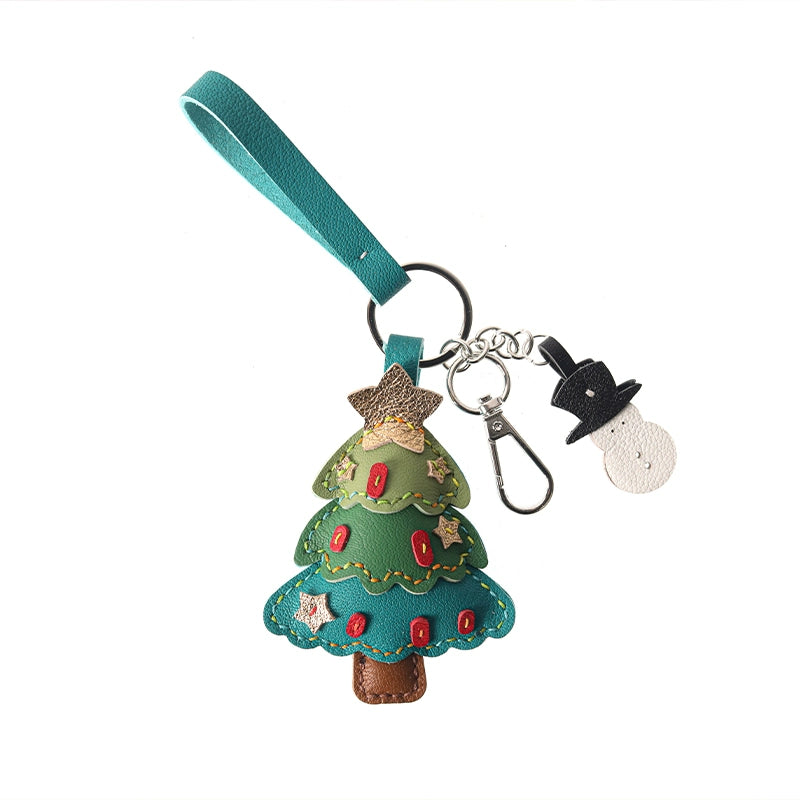 Genuine leather Christmas tree snowman car key chain pendant - Malachite Green is backordered and will ship as soon as it is back in stock.