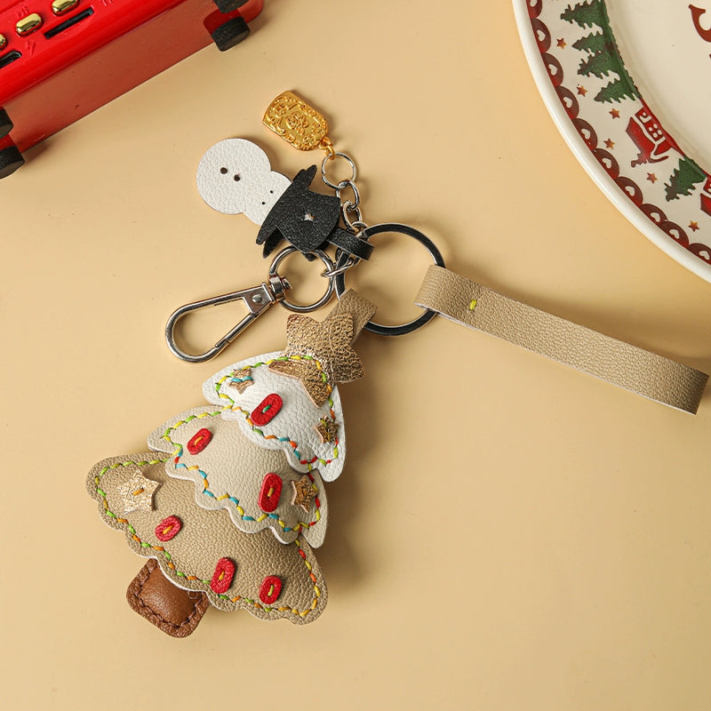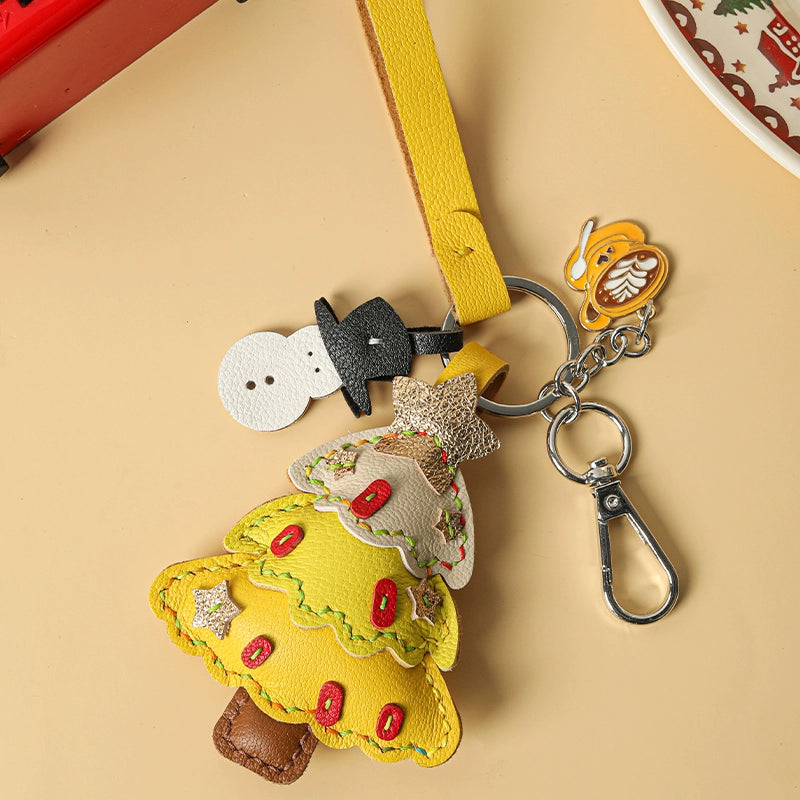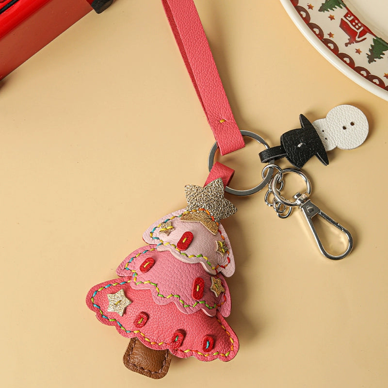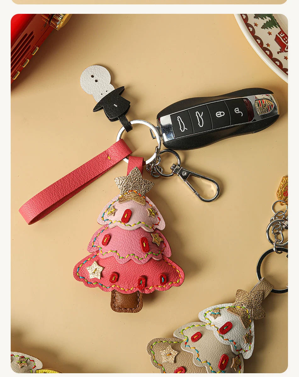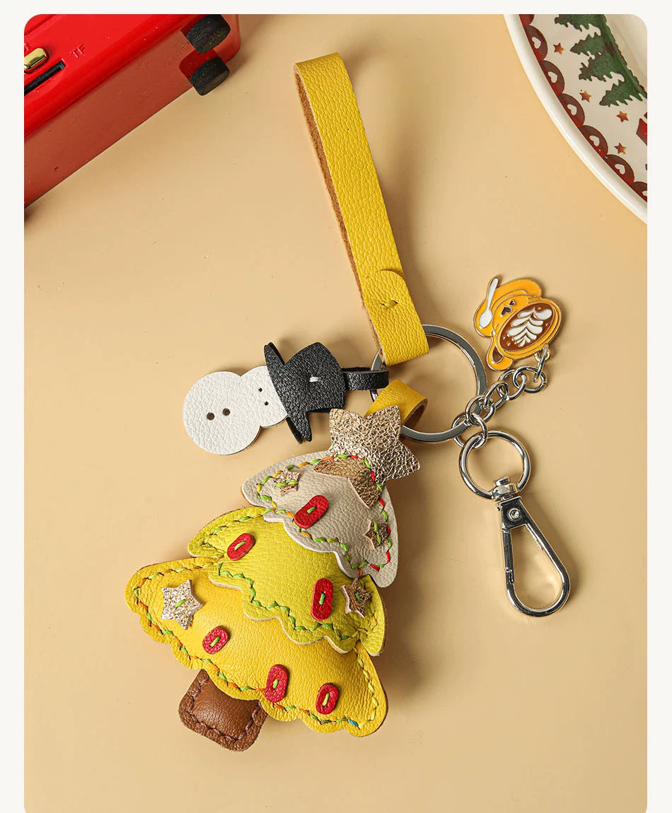 Genuine leather Christmas tree snowman car key chain pendant - Malachite Green is backordered and will ship as soon as it is back in stock.