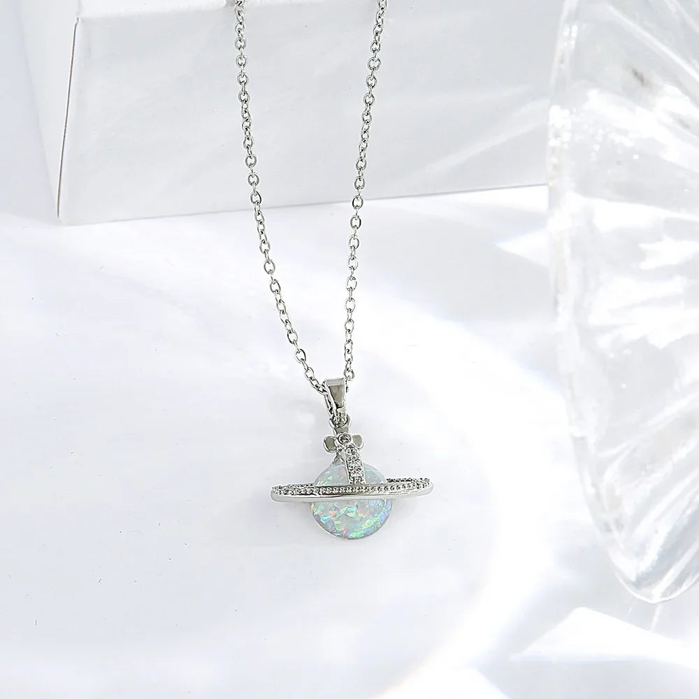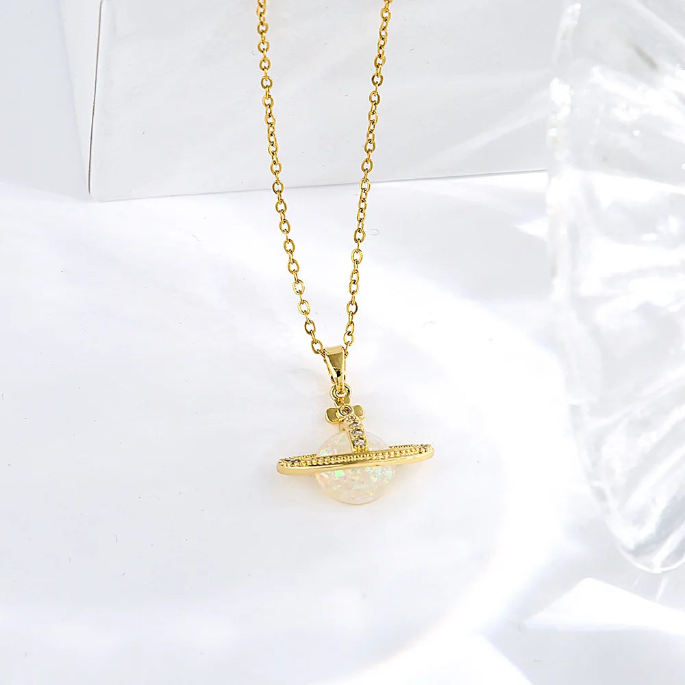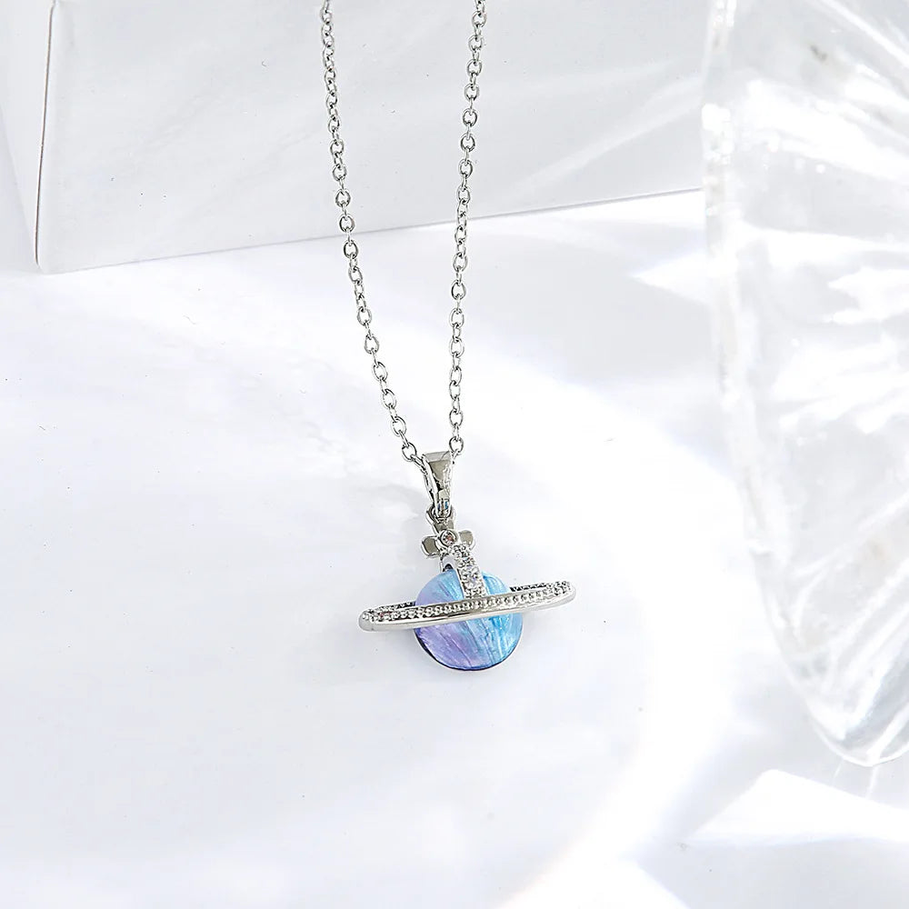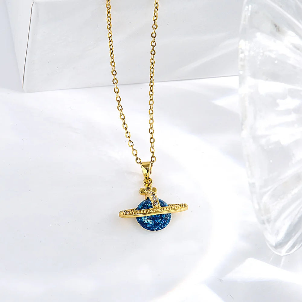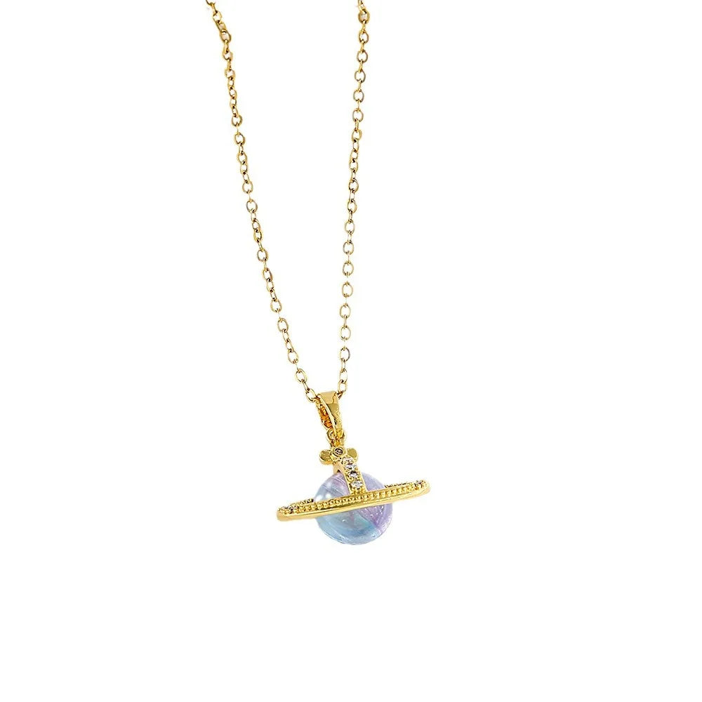 Gift box titanium steel micro-insert planet pendant necklace for girls light luxury fashion niche jewelry