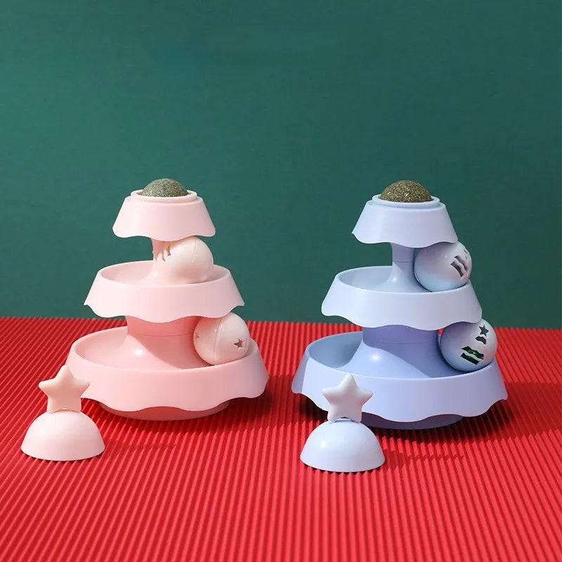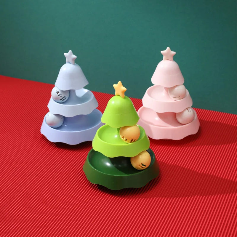 Glowing Cat Carousel Christmas Tree Mini Triple Track Teasing Cat Toys