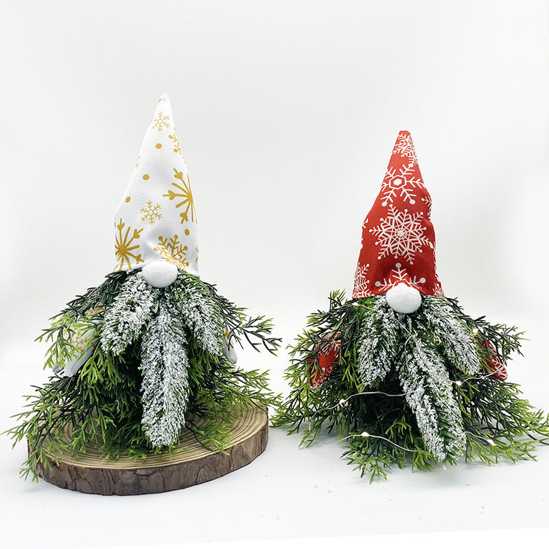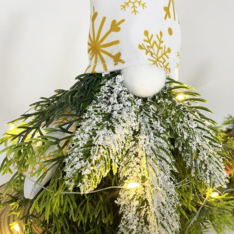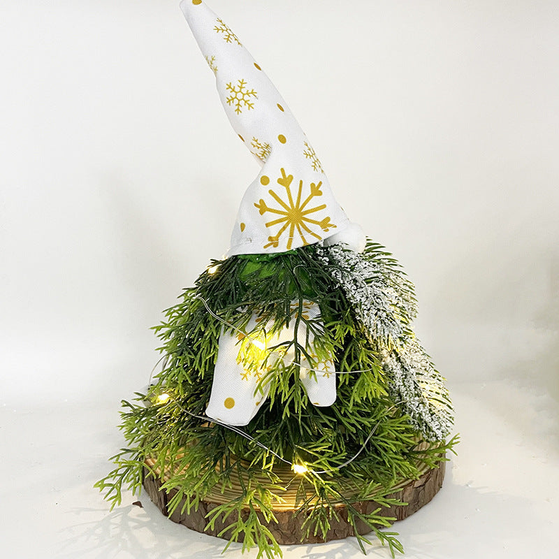 Golden Green Christmas Supplies Window Decoration Green Plants With Lights Faceless Elderly Floor Fine Doll