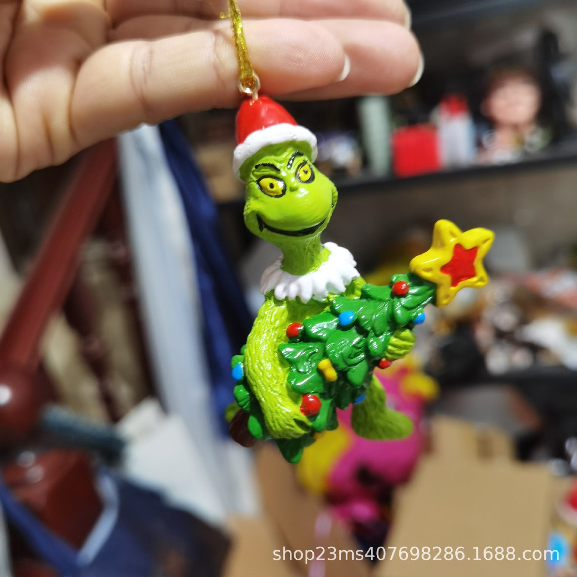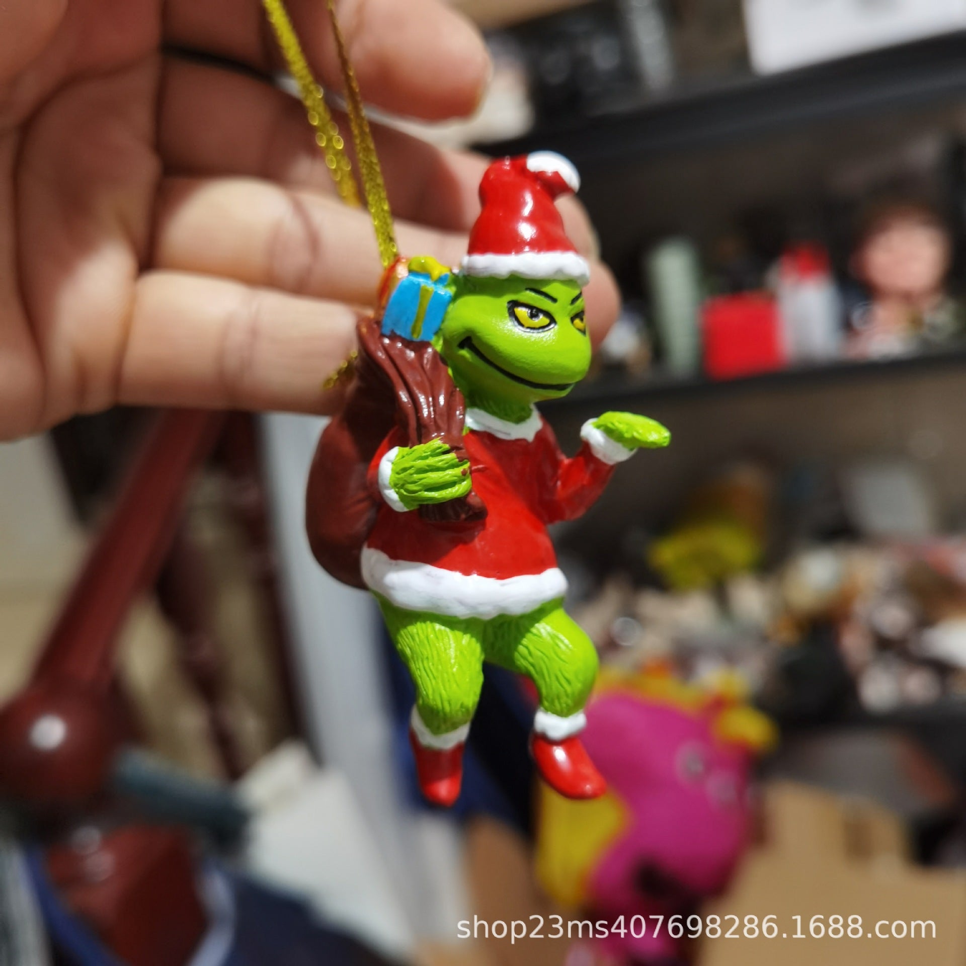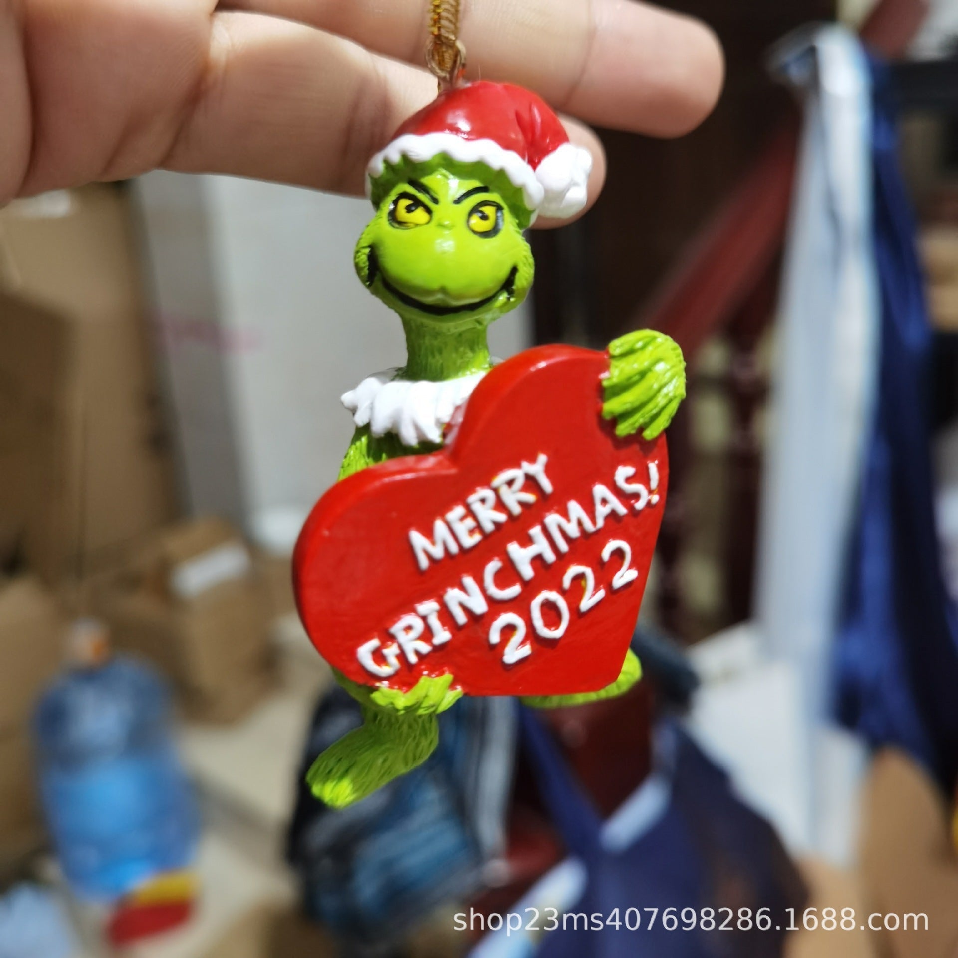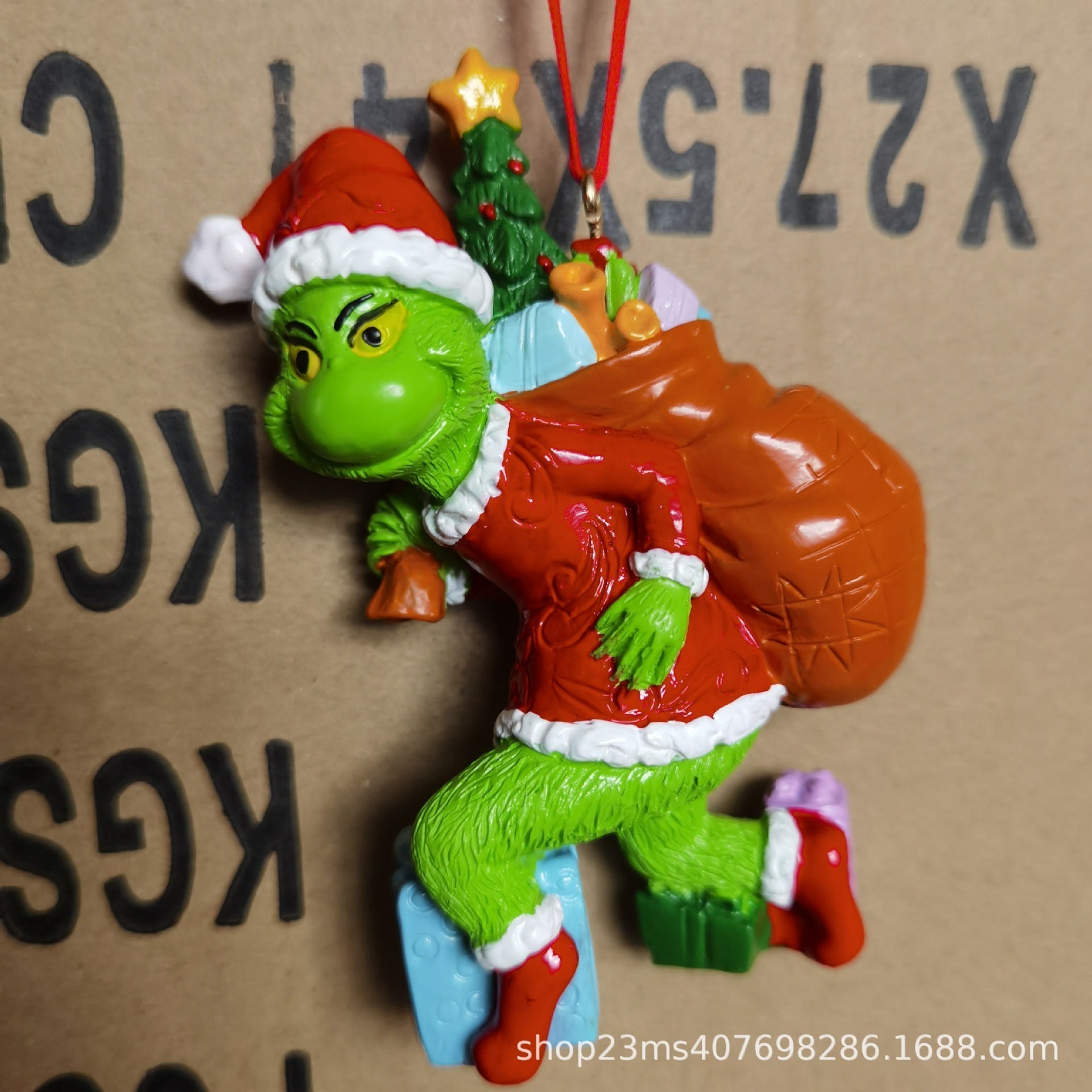 color : Grinch (holding gift), Grinch (carrying gift A), Grinch (holding Christmas tree), Grinch (carrying gift B), Grinch (holding love)