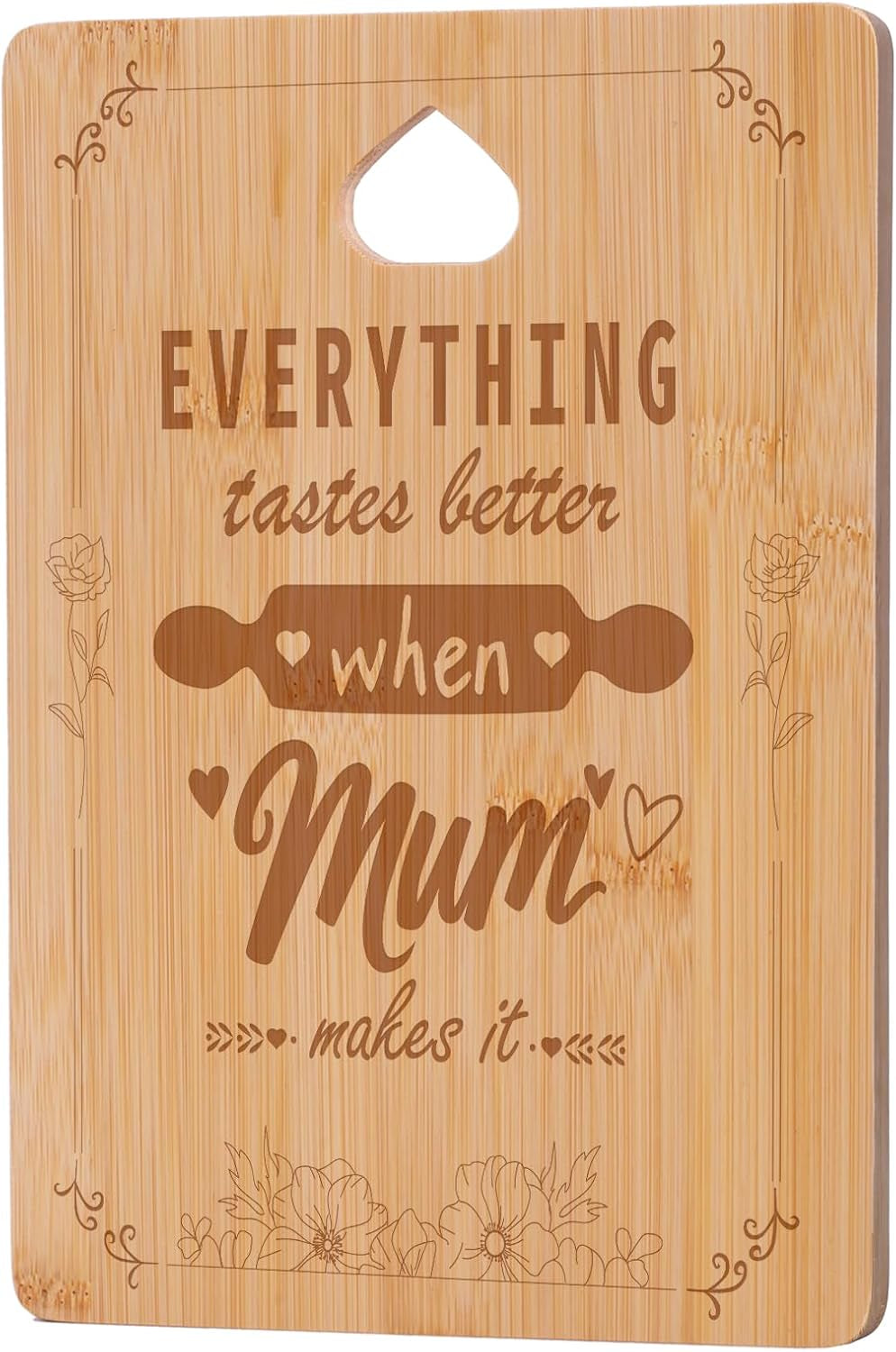 [ Birthday Gifts for Mum ]: This cutting board, engraved with the charming quote "Everything tastes better when Mum makes it," is a unique and heartfelt gift for special occasions like birthdays or Mother's Day, and a thoughtful way to show mum how much she means to you.
