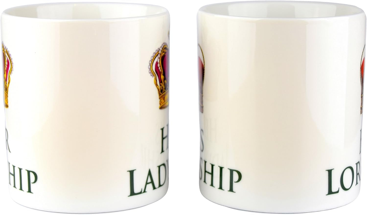 Celebrate your regal romance with this exquisite His Lordship and Her Ladyship Mug Set. Crafted from fine china, each mug boasts a noble crown motif, perfect for the king and queen of the household. Ideal for anniversaries, weddings, or as a charming touch to your daily coffee ritual, this set makes a stately statement