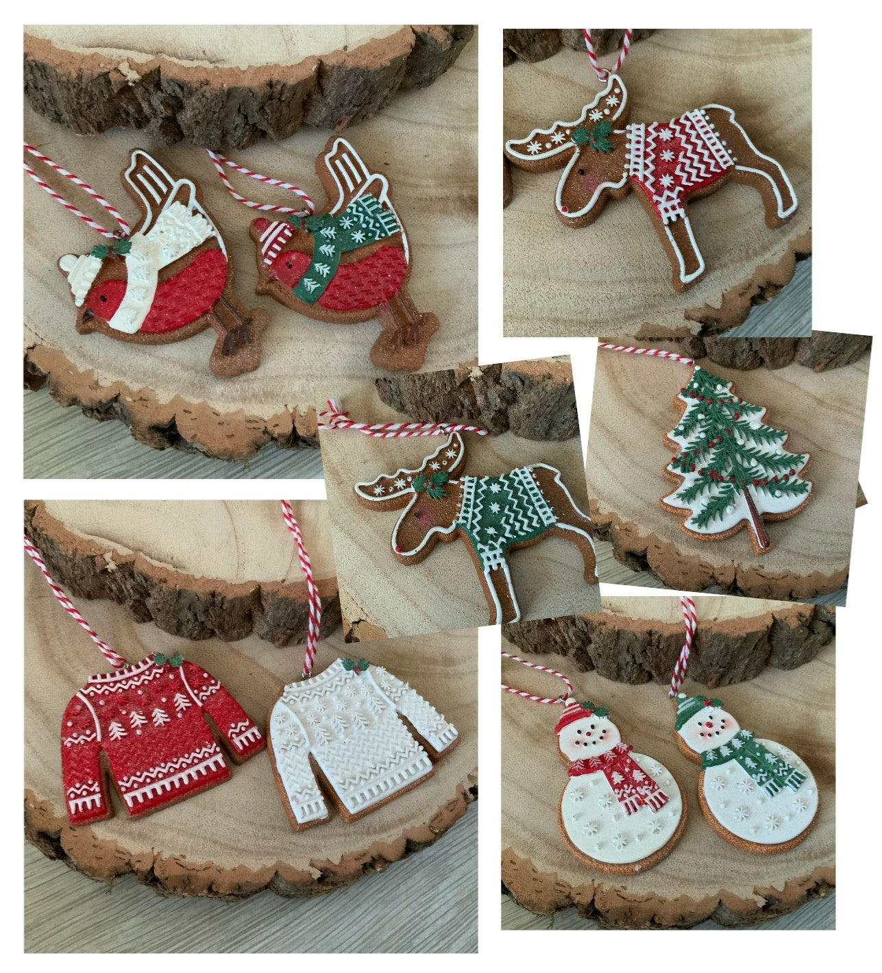 Iced Gingerbread Style Cookie Christmas Decoration Robin Jumper Gisela Graham