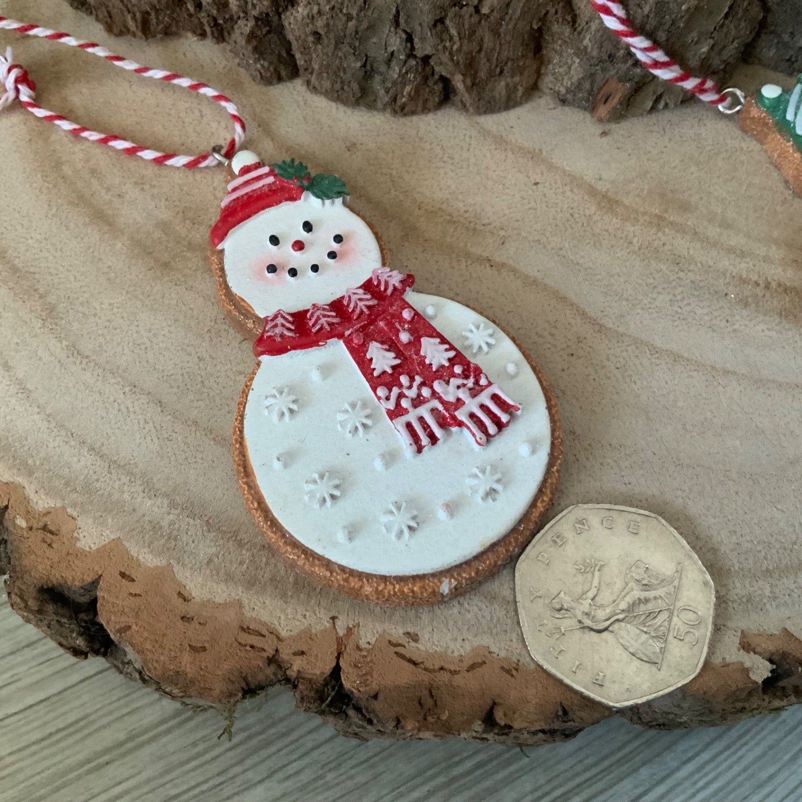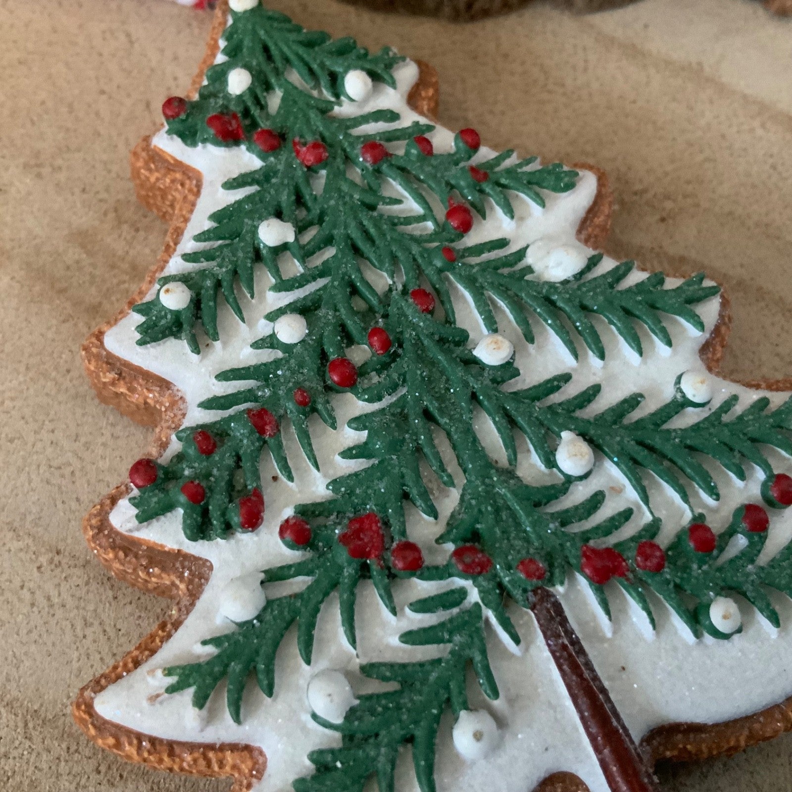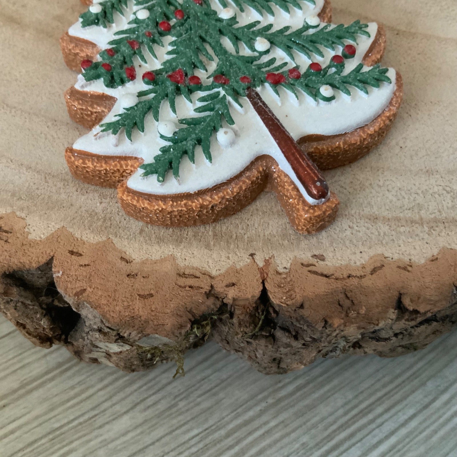 Resin Hanging Decoration mad to look liked iced gingerbread biscuits. Made by Gisela Graham