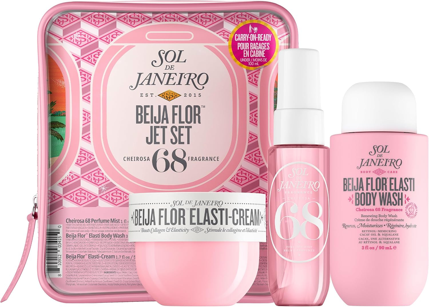 The Sol de Janeiro Beija Flor 3 Piece Gift Set offers a delightful tropical escape with its vibrant and uplifting scent. This set includes a 50ml Face Cream, a 90ml Body Wash, and a 30ml Hair & Body Mist, each infused with the signature Beija Flor fragrance. The face cream provides hydration and radiance, leaving the skin feeling smooth and nourished. The body wash creates a rich lather, cleansing the skin with a refreshing tropical aroma. The hair and body mist is the perfect finishing touch, offering a light and breezy scent that lingers throughout the day.The hair and body mist is the perfect finishing touch, offering a light and breezy scent that lingers throughout the day. This set is a joyful treat for those who love fresh, floral, and fruity notes, capturing the essence of sun-kissed Brazilian beauty.