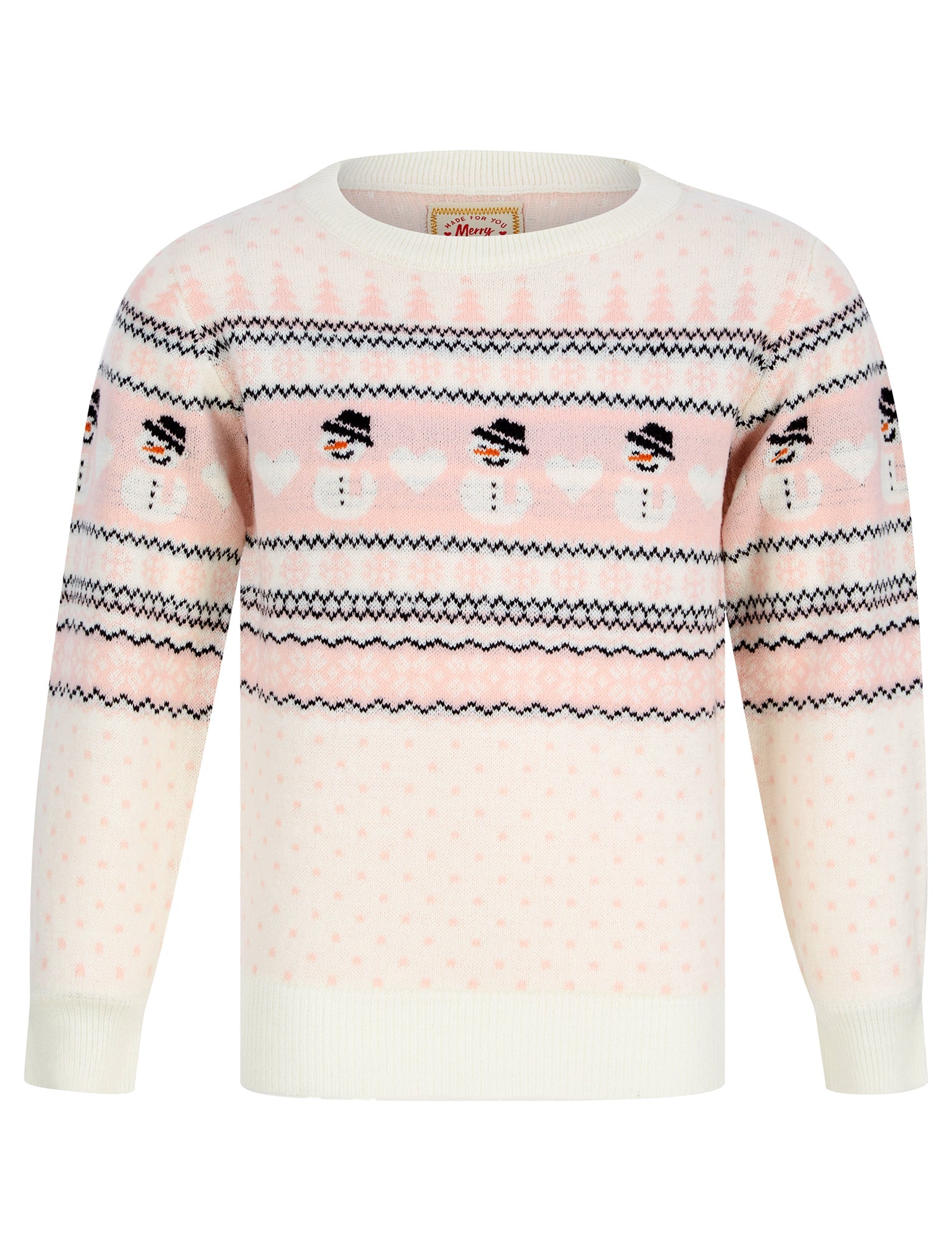 Kids Girls Christmas Jumper Snowman Jacquard Nordic Fairisle Xmas Sweater