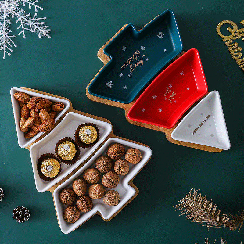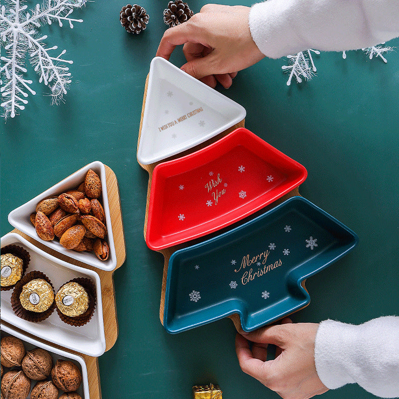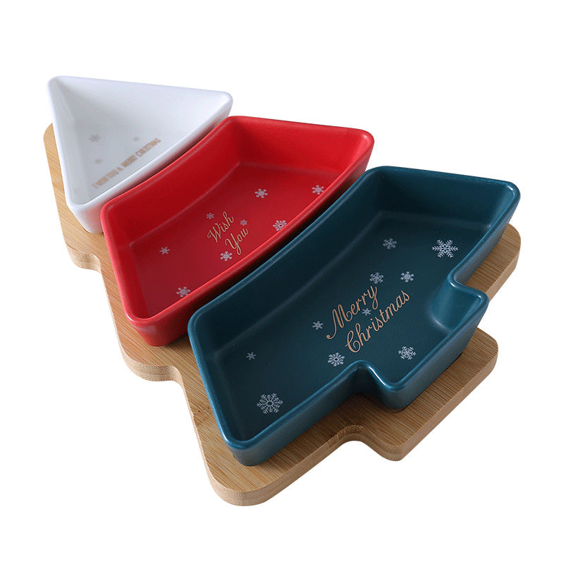 color: AL2346 Large White Christmas Tree Plate, AL2347 Large Mixed Color Christmas Tree Plate (White, Red, Green)