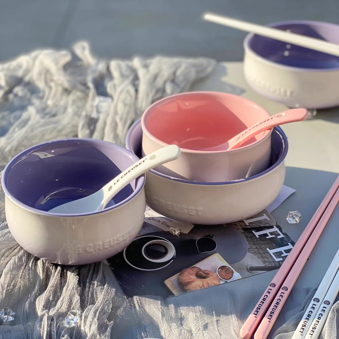 LE cool colour flower series tableware rice bowl 8pc set
