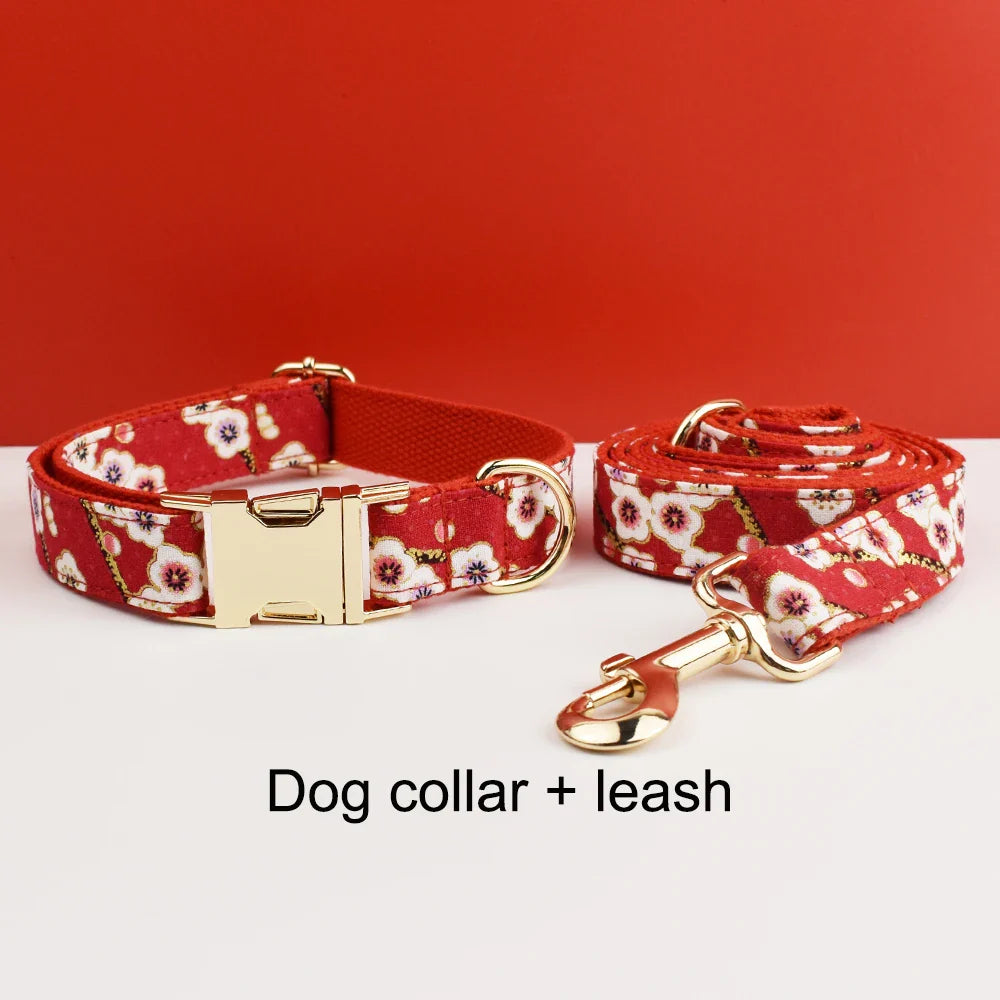 Luxury Personalized engravable dog collar Harness Leash Set Soft Cotton Floral Design Custom Bow Accessory for Dogs 01