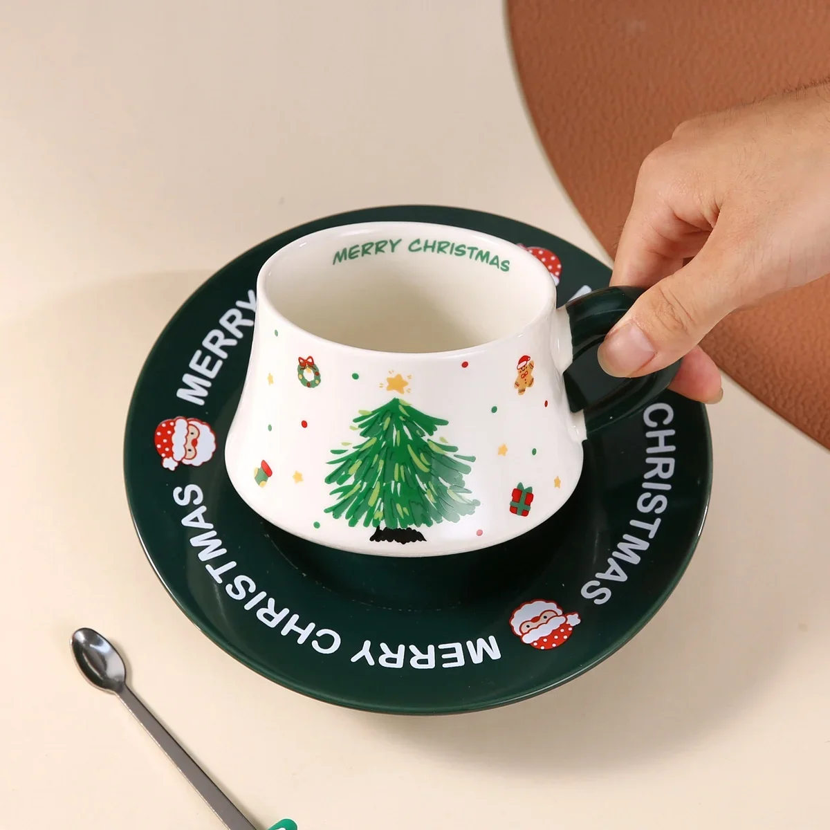 New Christmas Ceramic Coffee Cup and Dish Set, Household Ceramic Water Cup, Makeup Cup, Gift Box, Christmas Gift lijiao - A is backordered and will ship as soon as it is back in stock.
