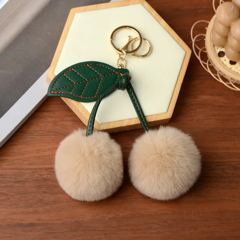 New Otter Rabbit Hair Cherry Multi-color Car Keychain Pendant Cute Pompom Doll Doll Bag Bag Hanging Key Chains for Women Gift