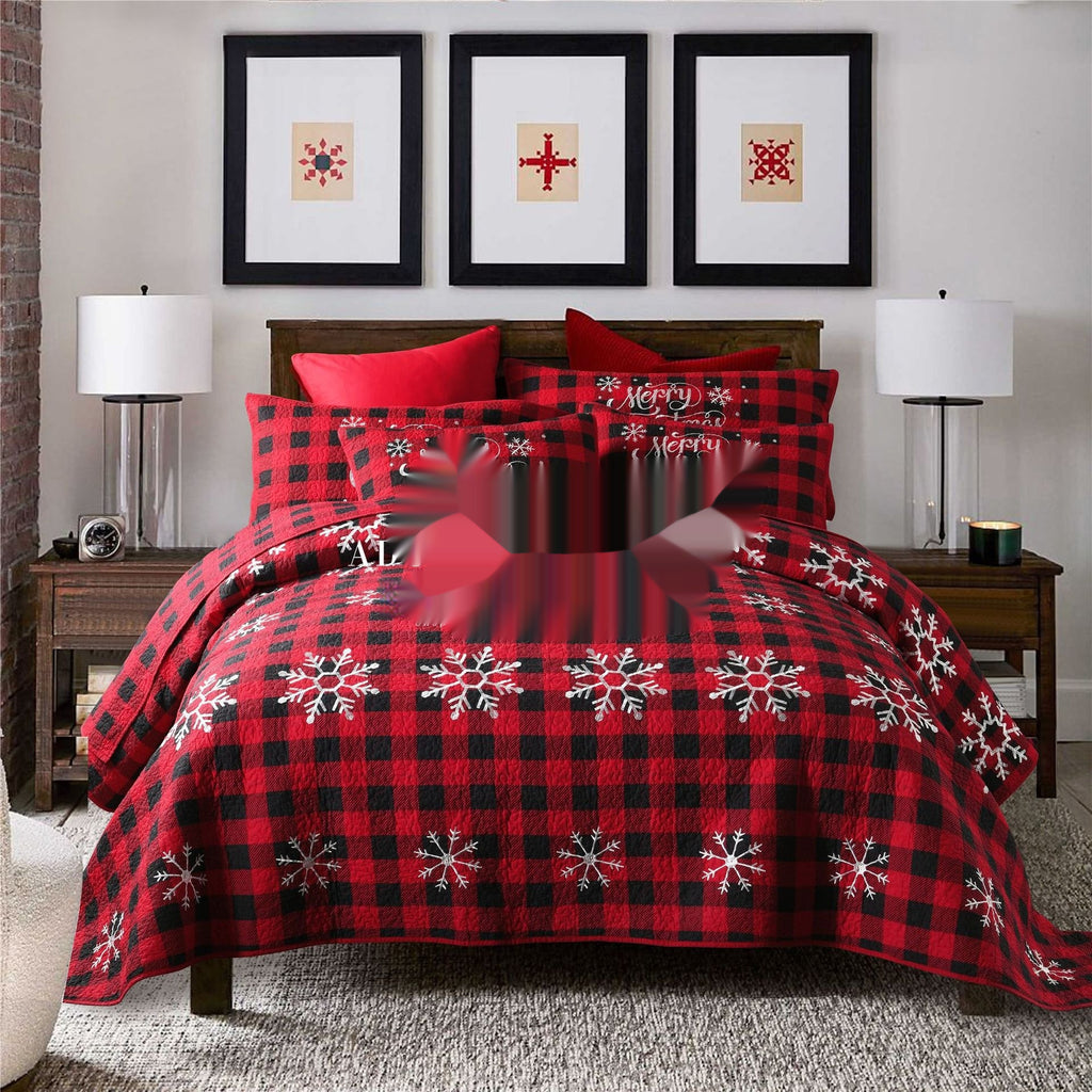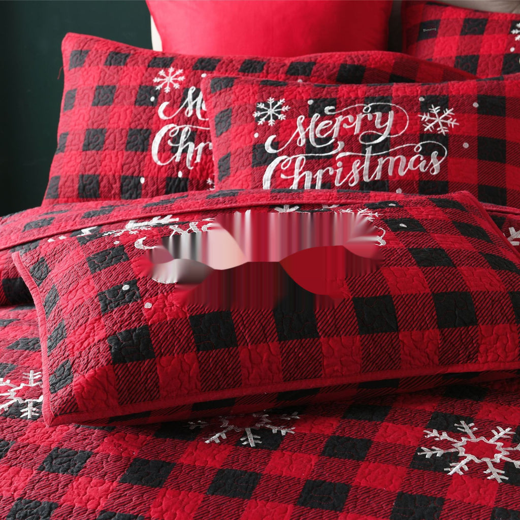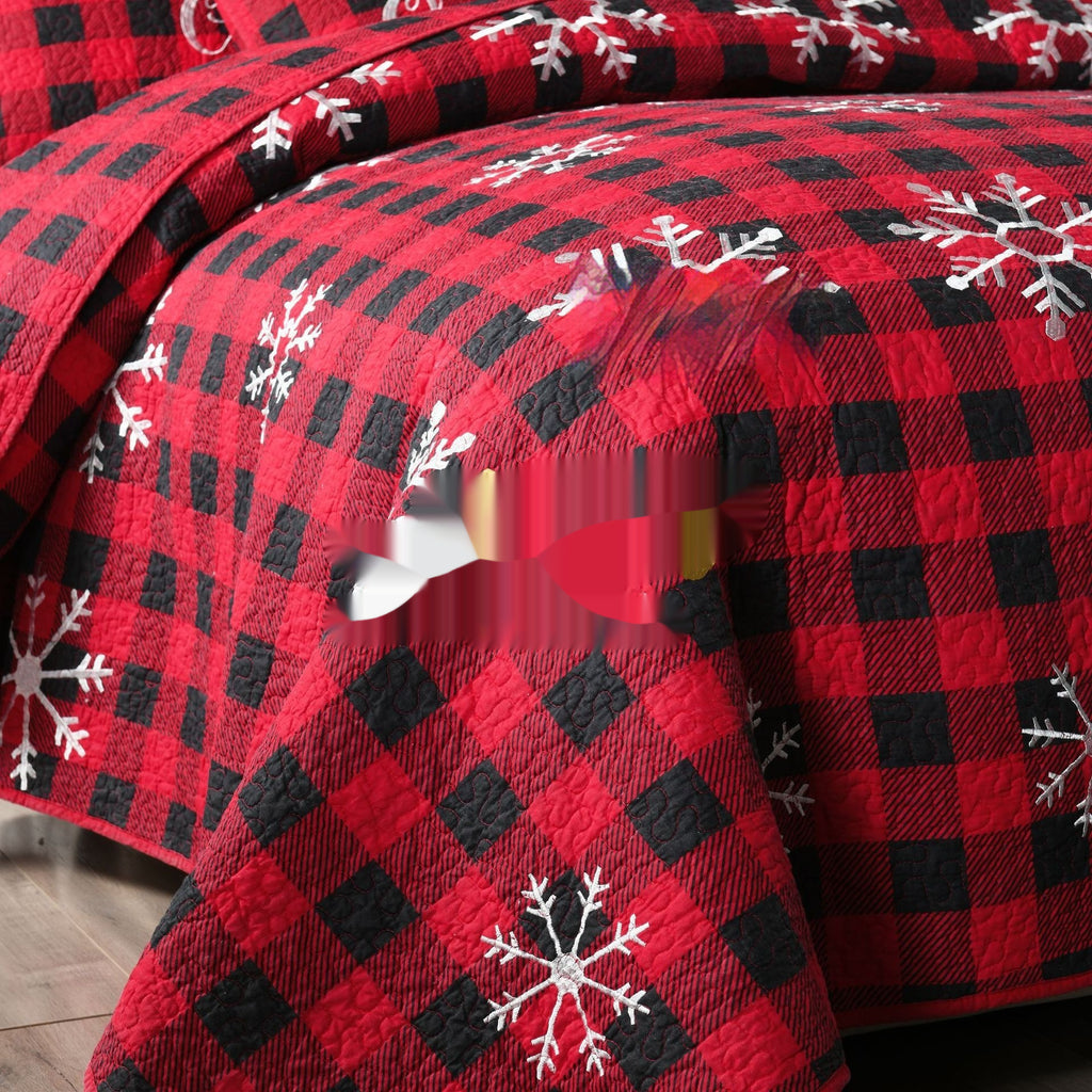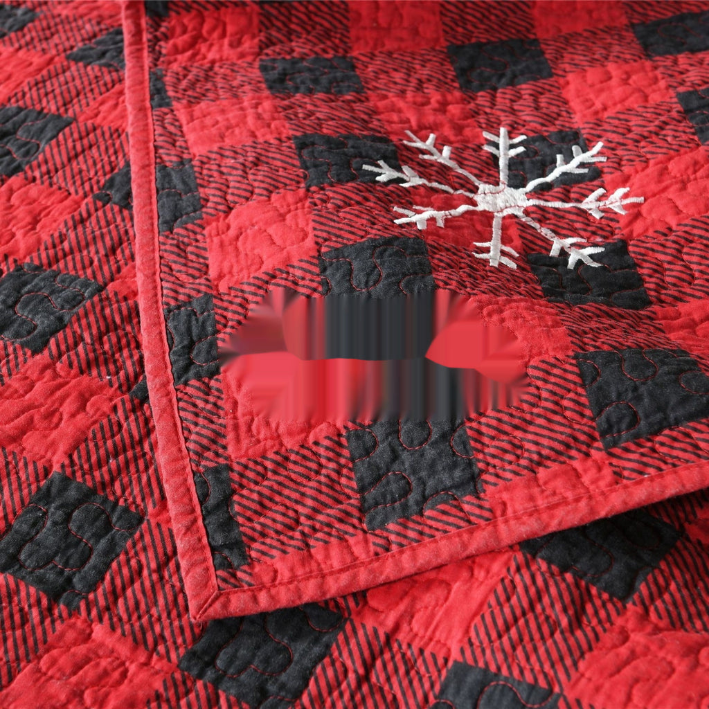 Original Single American High-end Cotton Fabric Red Plaid Christmas Holiday Style Snowflake Embroidery Quiltedtextiles Three-piece Set - Snowflake / Two piece Set is backordered and will ship as soon as it is back in stock.