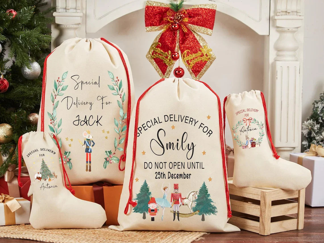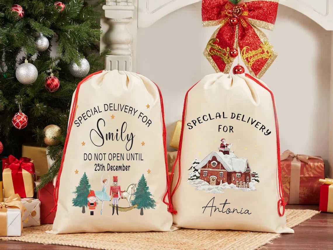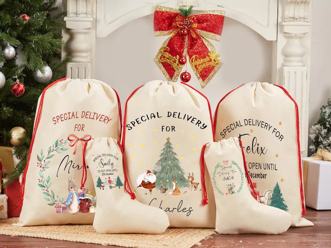 personalized Santa Sack Bag Christmas Gift Bag Drawstring Xmas Sacks Baby's First Christmas Gifts from Santa for Kids decoration