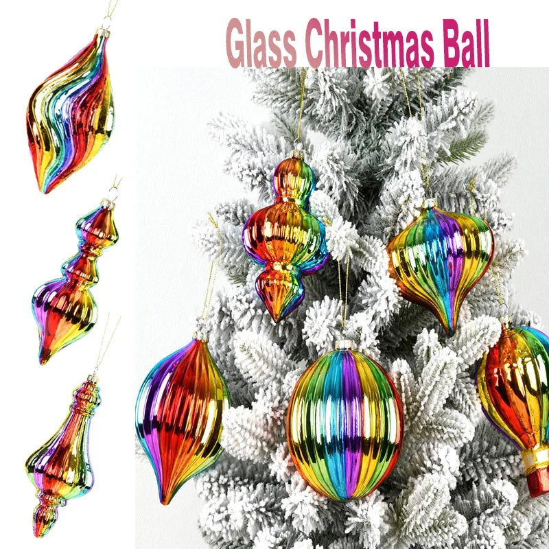 Rainbow Glass Christmas Ball Ornaments Onion and Pumpkin Shaped Christmas Tree Party Decoration Christmas Spheres Pendant - Style 03 / 1pcs is backordered and will ship as soon as it is back in stock.