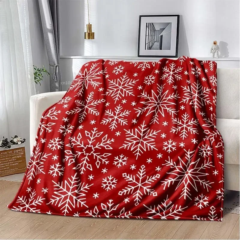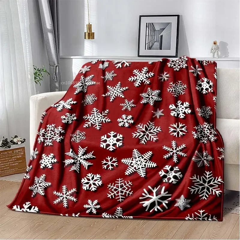Red Christmas Blanket Snowflake 3D Print Soft Cozy Flannel Blanket for Living Room Bedroom New Year Christmas Gift Home Decor