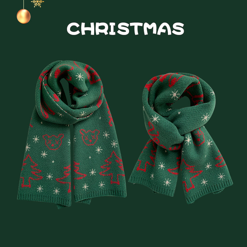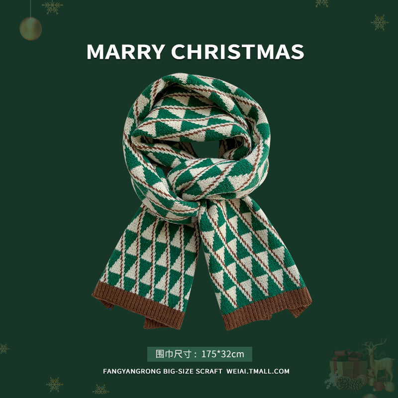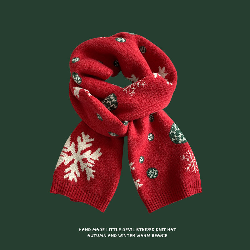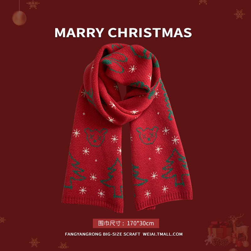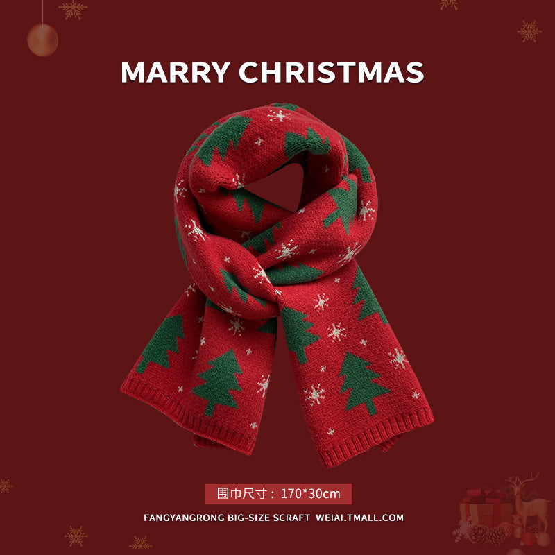 Red Christmas tree knitted scarf for women wool neck scarf