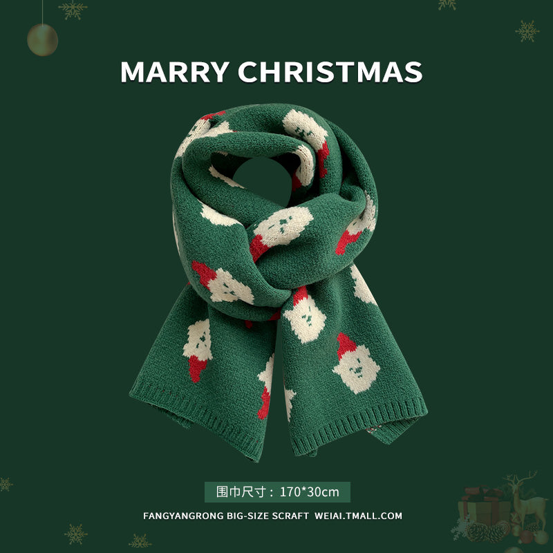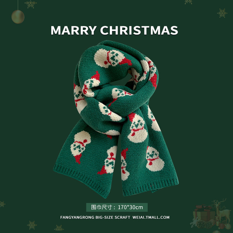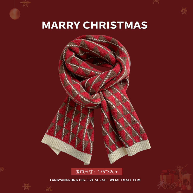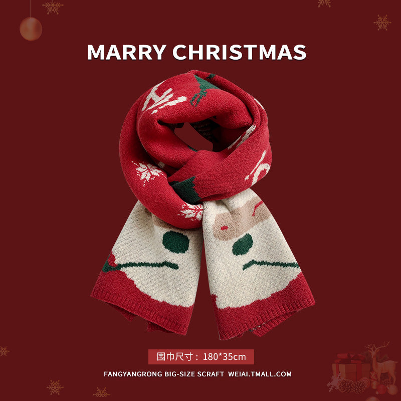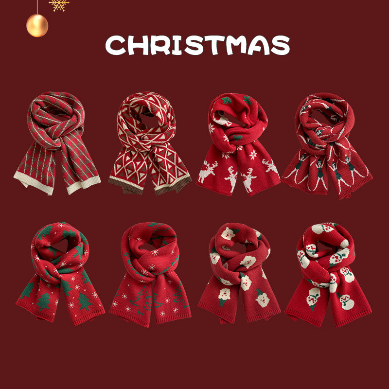 Red Christmas tree knitted scarf for women wool neck scarf