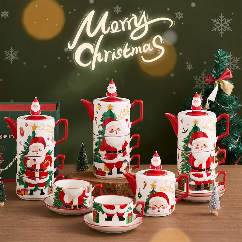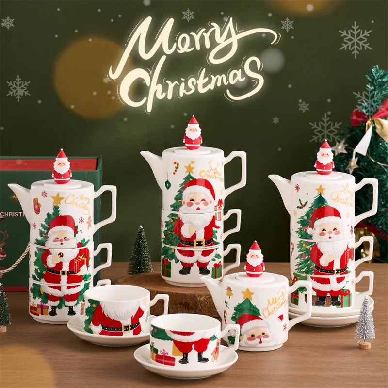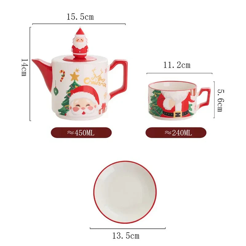 Santa Claus Ceramic Teapot Tea Cup Set Christmas Gift Ceramic Coffee Cup Afternoon tea Mug One pot and two cups Teaware Sets