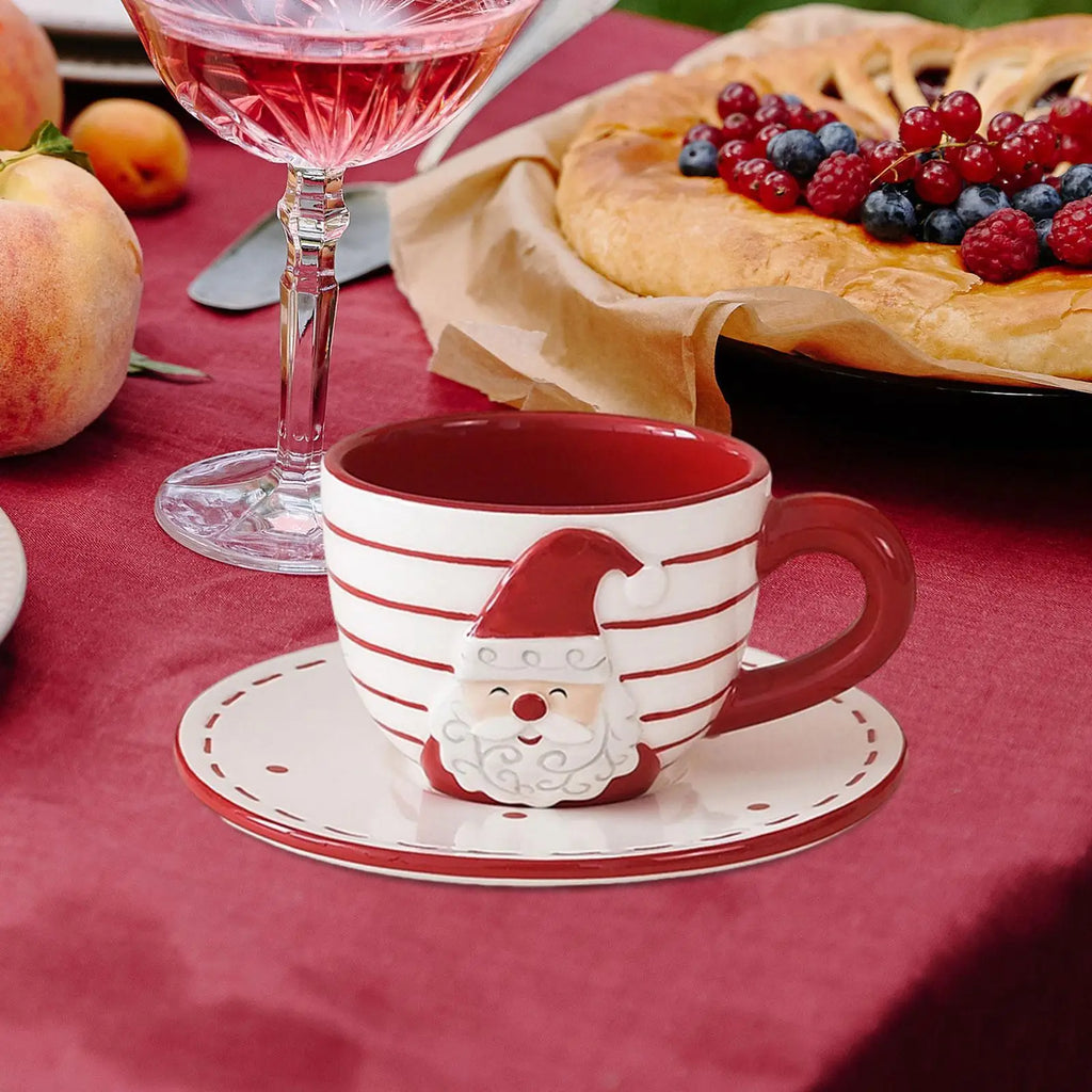 【What You Will Get】: 1 set santa claus tea cups with saucers, suitable for daily use and a good choice for home decoration