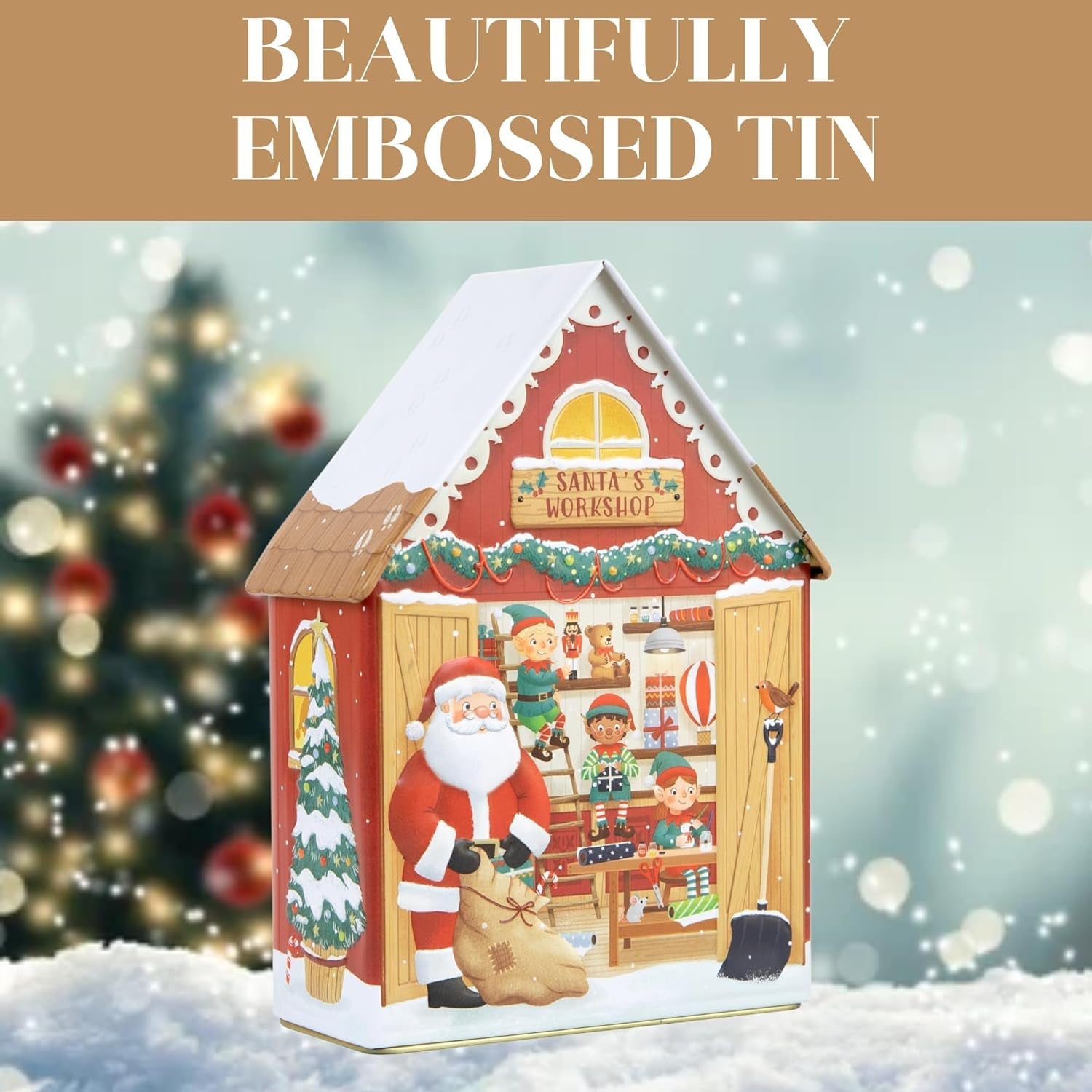 The Silver Crane Company is an award-winning company based in the heart of the New Forest, with over 40 years’ experience specialising in the design and supply of decorative novelty Christmas gifts tin packaging and food-filled gift tins. Established since 1979 as a small family-run business, they are now world leaders in luxury tin gift set designs and are regarded as the best in the industry for highly innovative and decorative tinware. They combine quality and innovation to deliver beautiful bespoke toffee tin products that are not only functional but that also have that WOW factor! Our sweets, cookies, and shortbread biscuits gift Christmas ideas make for the perfect Christmas presents. Whether you are looking for a Christmas gift set, a sharing Christmas toffee box, or just tins of sweets Christmas lovers will enjoy, our range of tin gifts will please women, men, kids and all the family! This Santa's workshop gift set tin is perfect for all the family to enjoy.