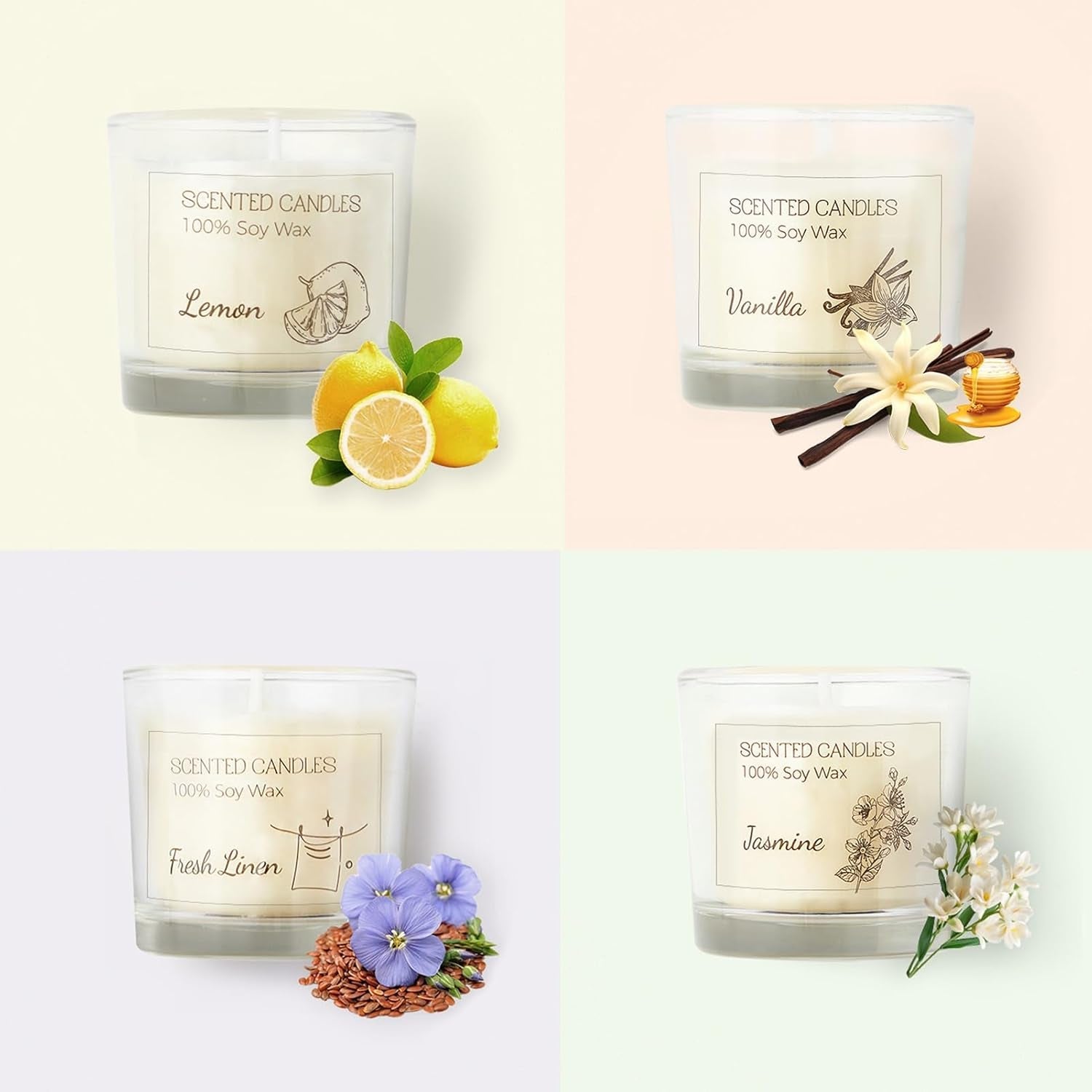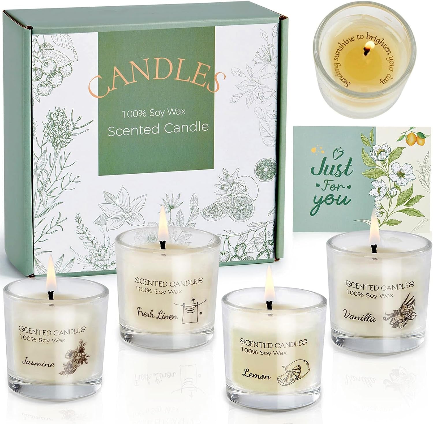 Scented Candles Gifts for Women, Votive Candles Set of Fresh Linen, Vanilla, Jasmine, and Lemon, Soy Wax Candle Gift Set for Birthdays, Weddings, Christmas is backordered and will ship as soon as it is back in stock.