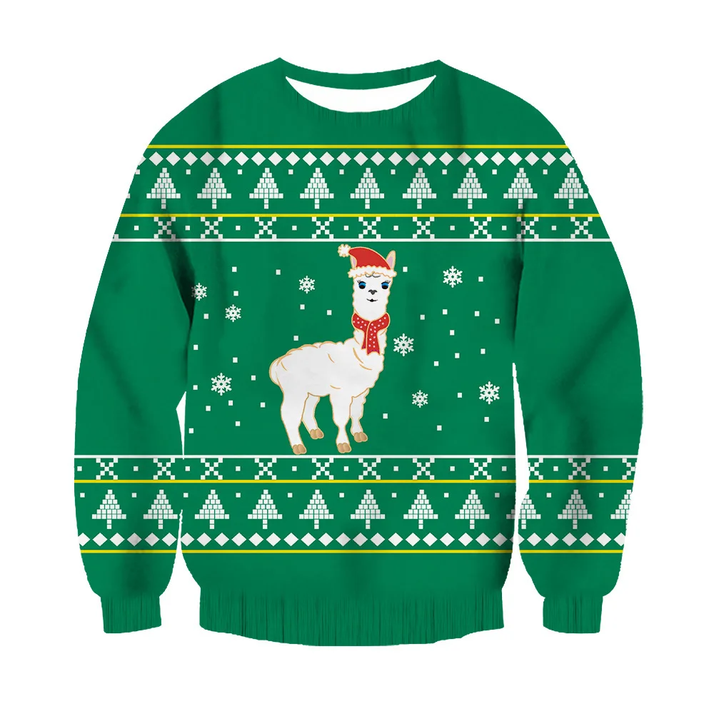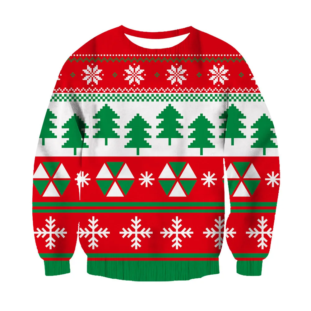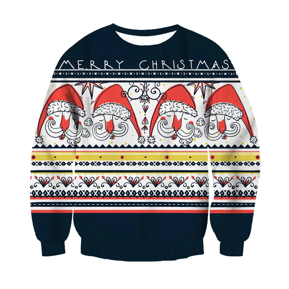 Spring And Autumn Hot Selling Christmas 3D Print Thin Men's Crew Neck Hoodie Casual Loose Hoodless Sweatshirt Polyester Pullover