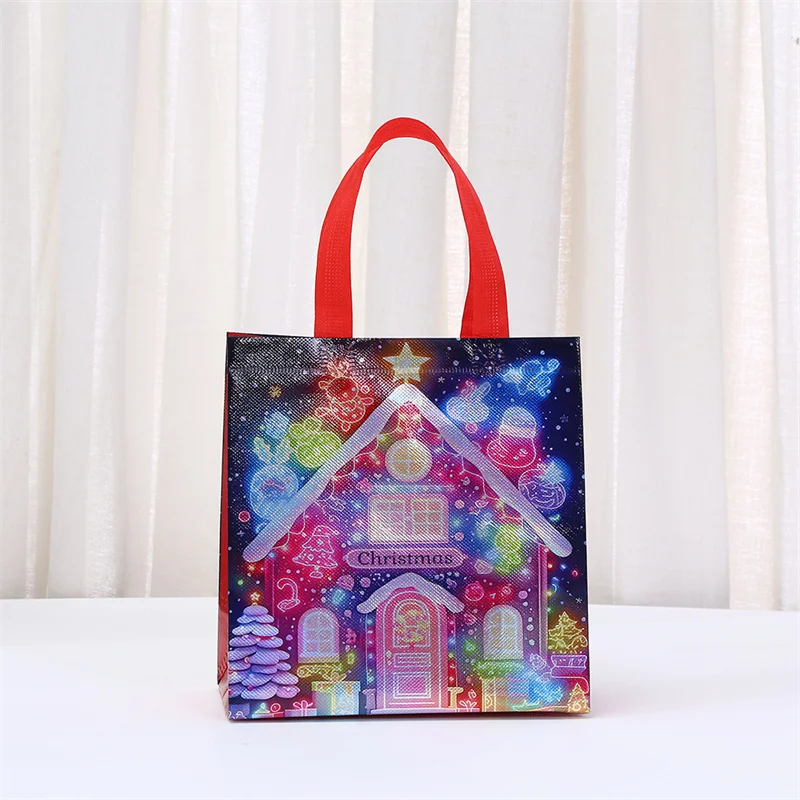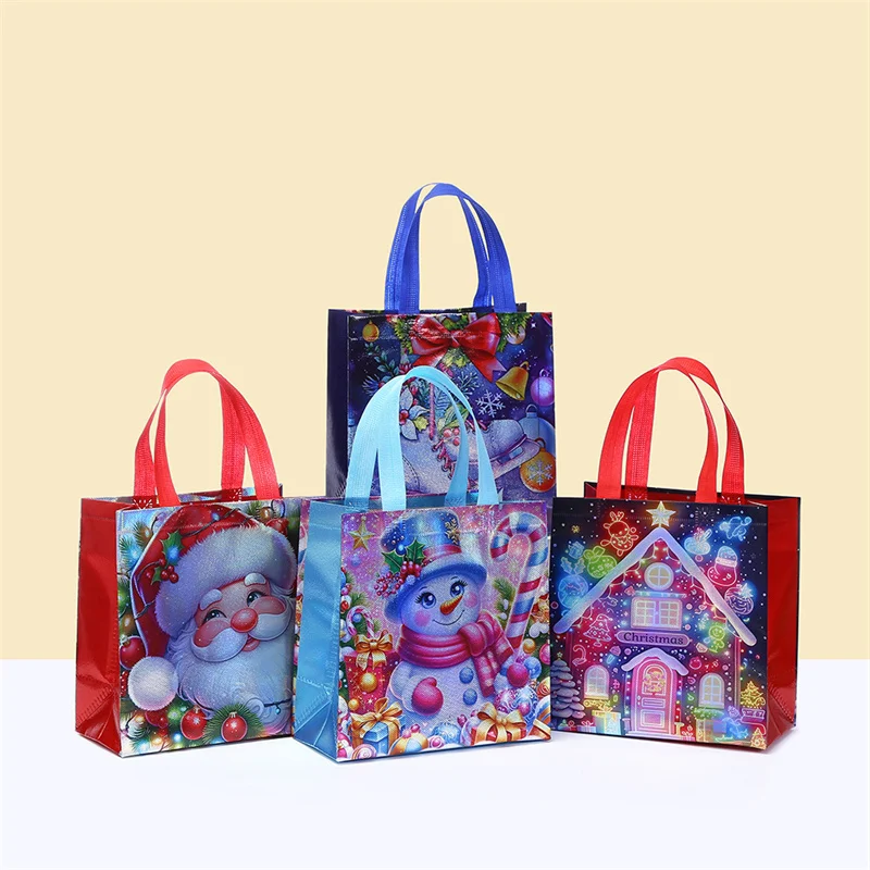 StoBag 8/20pcs Merry Christmas Non-woven Tote Bag Gift Fabric Kids Package Waterproof for Candy Storage Reusable Pouch Party