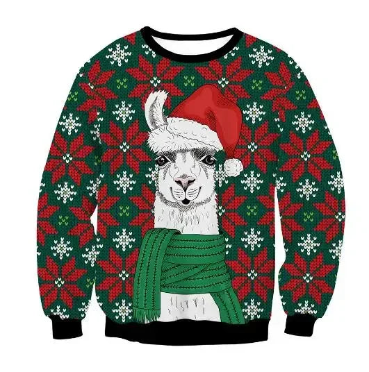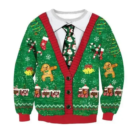 Ugly Christmas Sweaters Green Jumpers 3D Funny Printed Holiday Party Xmas Jesus Sweatshirt for Party Birthday Xmas Sweatshirt
