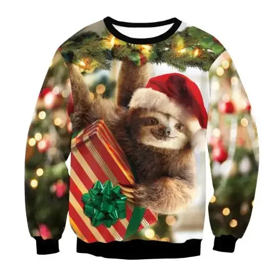 Unisex Men Women 2024 Ugly Christmas Sweater For Holidays Santa Elf Christmas Funny Fake Hair Sweater Autumn Winter Blouses Clothing