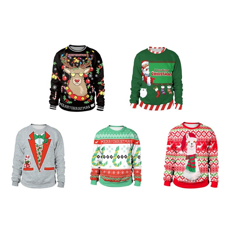 Women Christmas Sweater Autumn Unisex Christmas Casual Loose Long-sleeved Round Neck Print Sweater Light 2XL - Black / M is backordered and will ship as soon as it is back in stock.