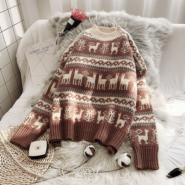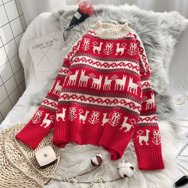 Women Knitted Christmas Sweater New Loose pullover - Beige / One Size is backordered and will ship as soon as it is back in stock.