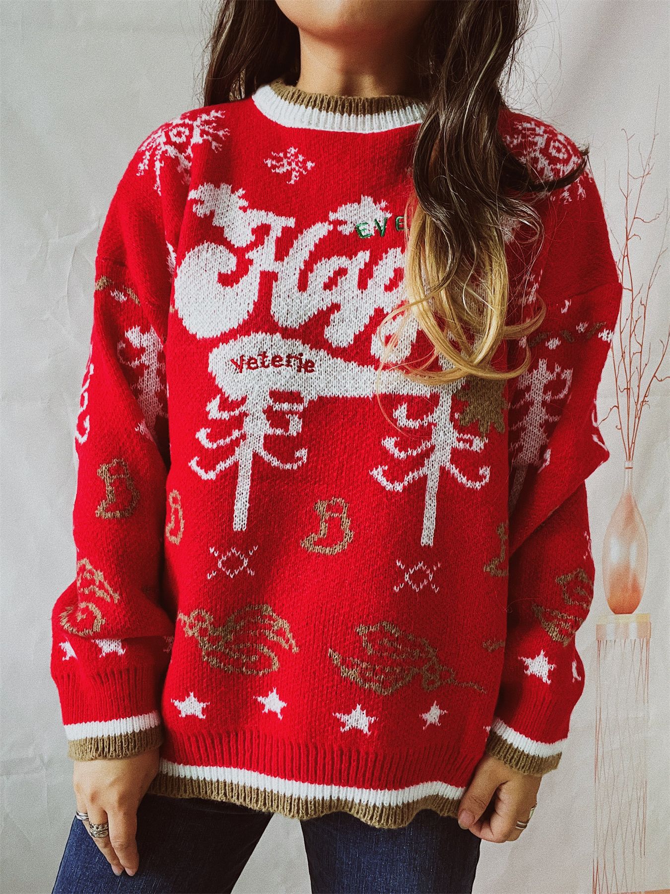 Women's Round Neck Long Sleeve Contrast Color Letter Christmas Sweater - Color 1 / L is backordered and will ship as soon as it is back in stock.